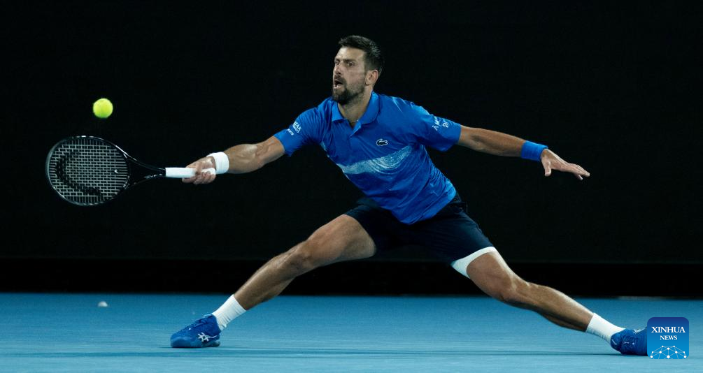 MELBOURNE, Jan. 21 (Xinhua) -- Novak Djokovic overcame an injury scare and staged a remarkable resurrection to defeat third seed Carlos Alcaraz on Tuesday, while defending women's champion Aryna Sabalenka battled into the Australian Open semifinals.