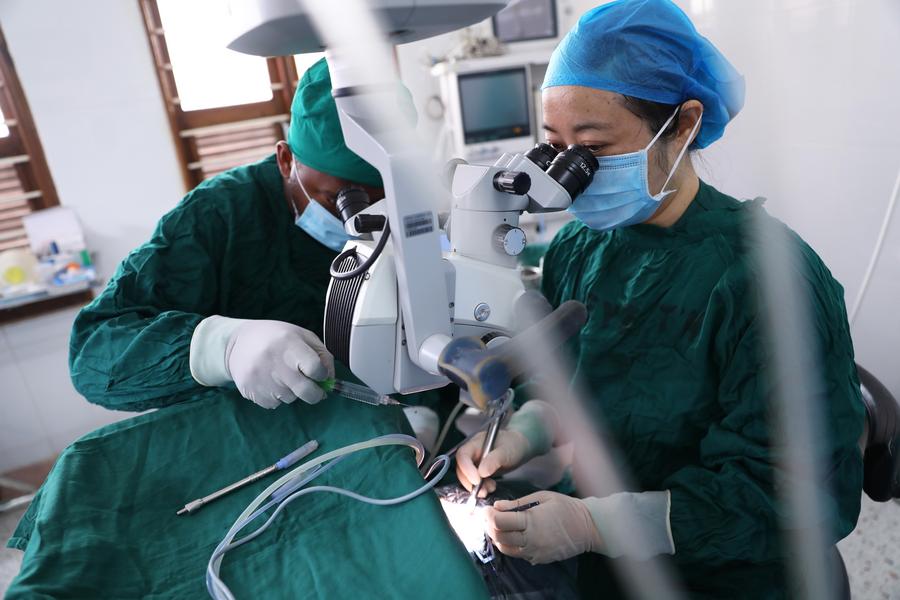 The Chinese medical team has implemented a "small and effective" model of medical care by focusing on cataracts, a widespread yet treatable condition. Their approach combines precision medicine with technical training to deliver significant health improvements at low cost and high efficiency.