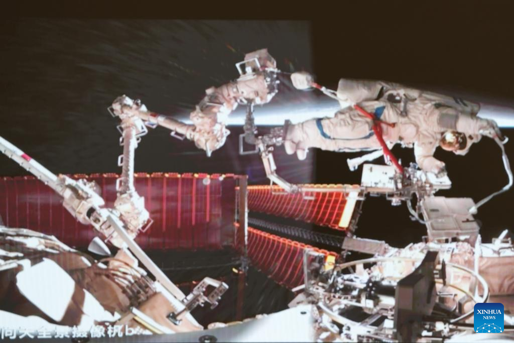Members of the Shenzhou-19 crew aboard China's orbiting space station completed their mission's second series of extravehicular activities (EVAs) at 1:12 a.m. (Beijing Time) on Tuesday, according to the China Manned Space Agency. (Xinhua/Liu Fang)