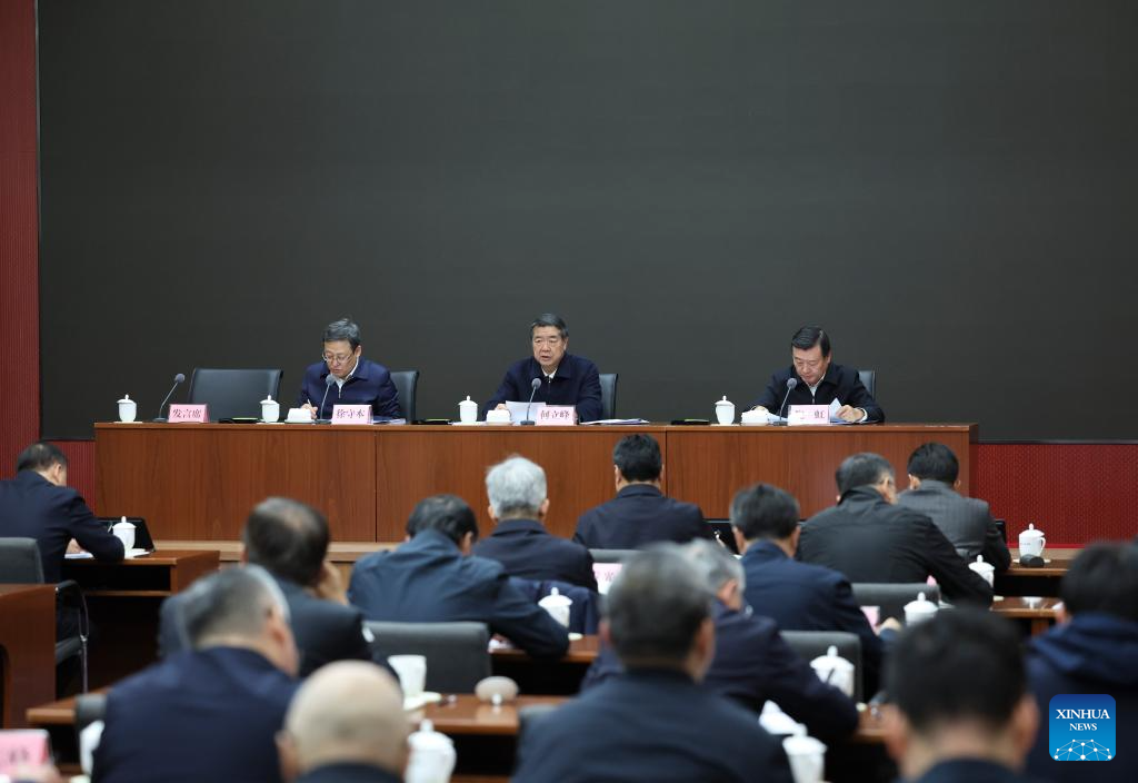 Chinese Vice Premier He Lifeng, also a member of the Political Bureau of the Communist Party of China Central Committee, attends a national video conference on advancing urban renewal tasks across the country and delivers a speech in Beijing, capital of China, Jan. 20, 2025. (Xinhua/Ding Haitao)
