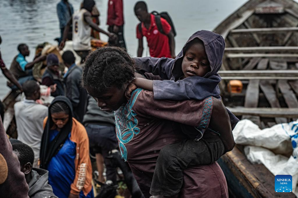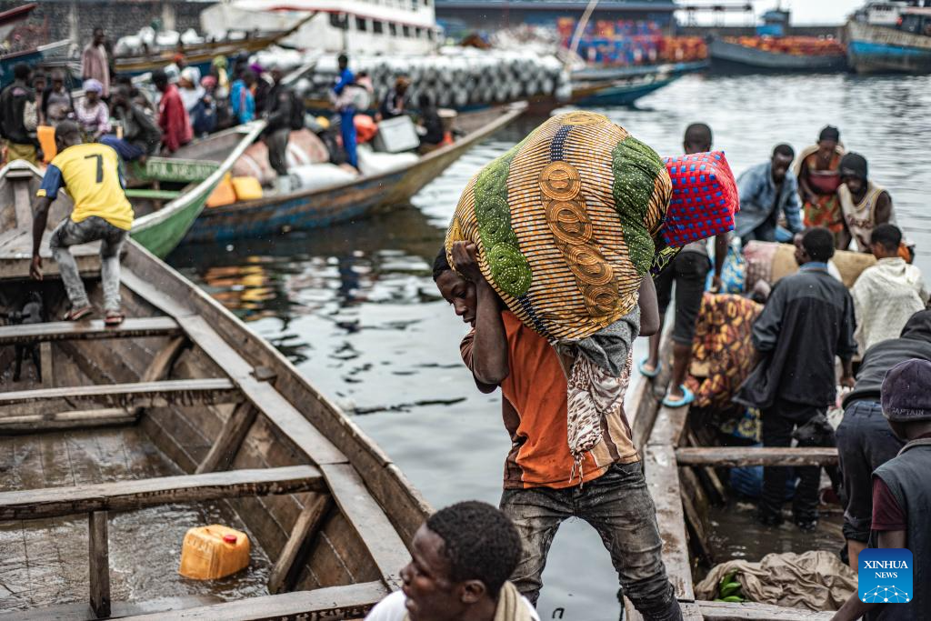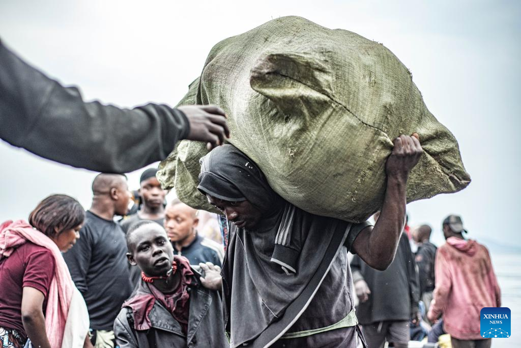 Displaced people are seen at the Nzulo port, near Goma, North Kivu province, eastern Democratic Republic of the Congo (DRC), on Jan. 23, 2025. The situation in the eastern DRC has deteriorated significantly, marked by escalating conflicts involving various armed groups, notably the M23 and the Allied Democratic Forces.