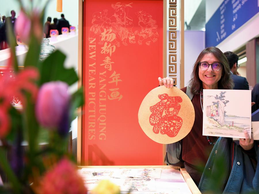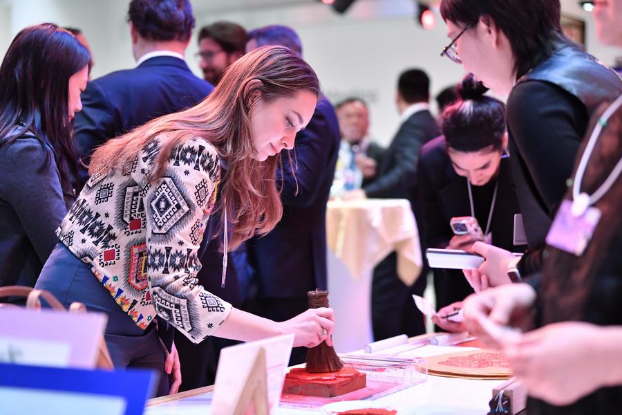 A participant tries to print Yangliuqing woodblock paintings at a reception held by Tianjin City of China during the World Economic Forum (WEF) Annual Meeting 2025 in Davos, Switzerland, Jan. 21, 2025. (Xinhua/Lian Yi)A participant shows Yangliuqing woodblock paintings at a reception held by Tianjin City of China during the World Economic Forum (WEF) Annual Meeting 2025 in Davos, Switzerland, Jan. 21, 2025. (Xinhua/Lian Yi)A staff member holds a plush toy snake at a reception held by Tianjin City of China during the World Economic Forum (WEF) Annual Meeting 2025 in Davos, Switzerland, Jan. 21, 2025. (Xinhua/Peng Ziyang)Participants attend a reception held by Tianjin City of China during the World Economic Forum (WEF) Annual Meeting 2025 in Davos, Switzerland, Jan. 21, 2025. (Xinhua/Lian Yi)Participants attend a reception held by Tianjin City of China during the World Economic Forum (WEF) Annual Meeting 2025 in Davos, Switzerland, Jan. 21, 2025. (Xinhua/Lian Yi)Participants try Tianjin crepe at a reception held by Tianjin City of China during the World Economic Forum (WEF) Annual Meeting 2025 in Davos, Switzerland, Jan. 21, 2025. (Xinhua/Peng Ziyang)Participants try dumplings at a reception held by Tianjin City of China during the World Economic Forum (WEF) Annual Meeting 2025 in Davos, Switzerland, Jan. 21, 2025. (Xinhua/Lian Yi)■