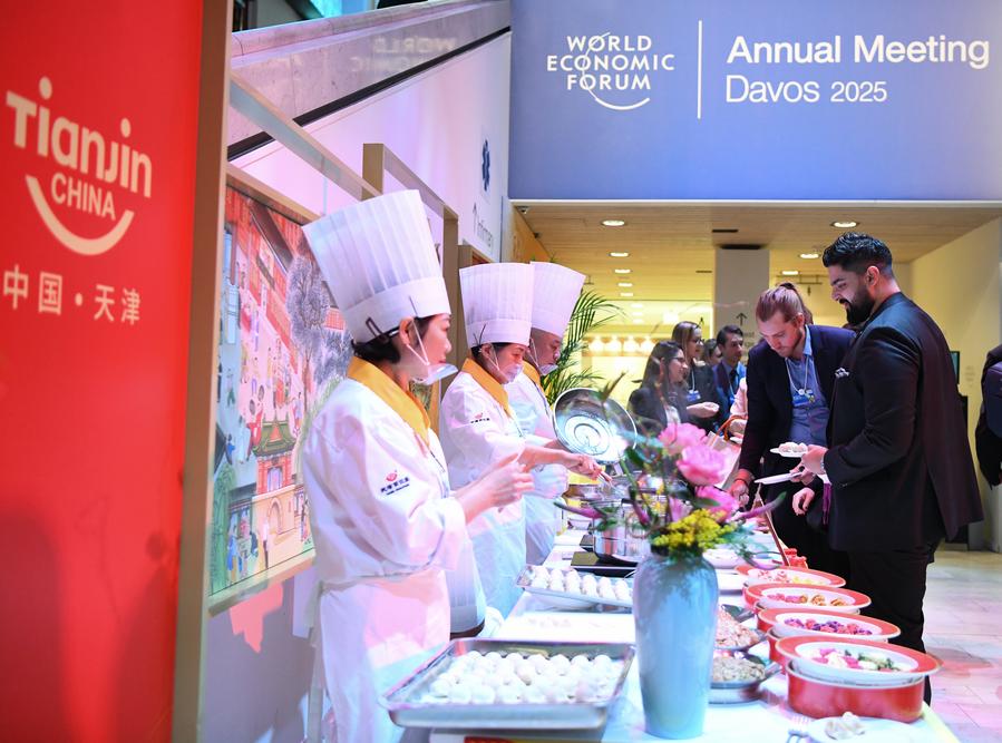 DAVOS, Jan. 22 (Xinhua) -- Tianjin, the host city of the 2025 Summer Davos (Annual Meeting of the New Champions), held the reception here on Tuesday evening to mark the upcoming Chinese Spring Festival, or the Chinese Lunar New Year.