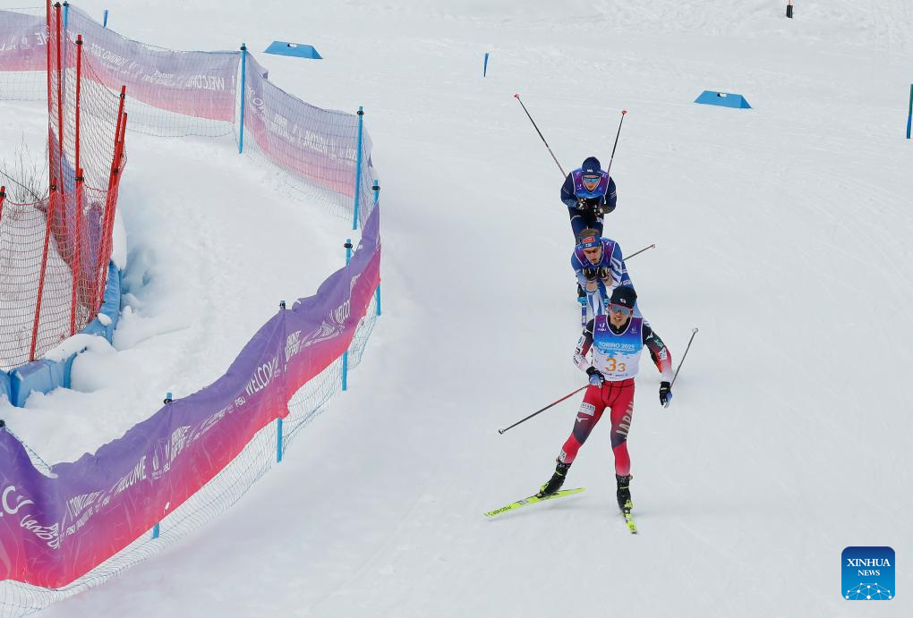 Yamazaki Daito of Japan competes during the cross-country skiing men's 4x7.5km relay at the 2025 FISU Winter World University Games in Pragelato, Italy, Jan. 21, 2025. (Xinhua/Zhang Fan)