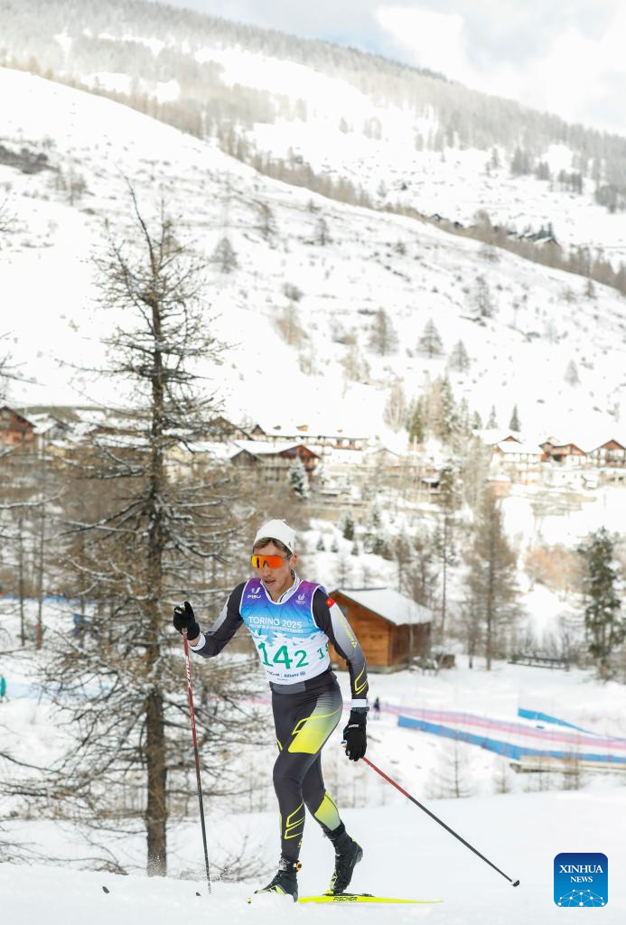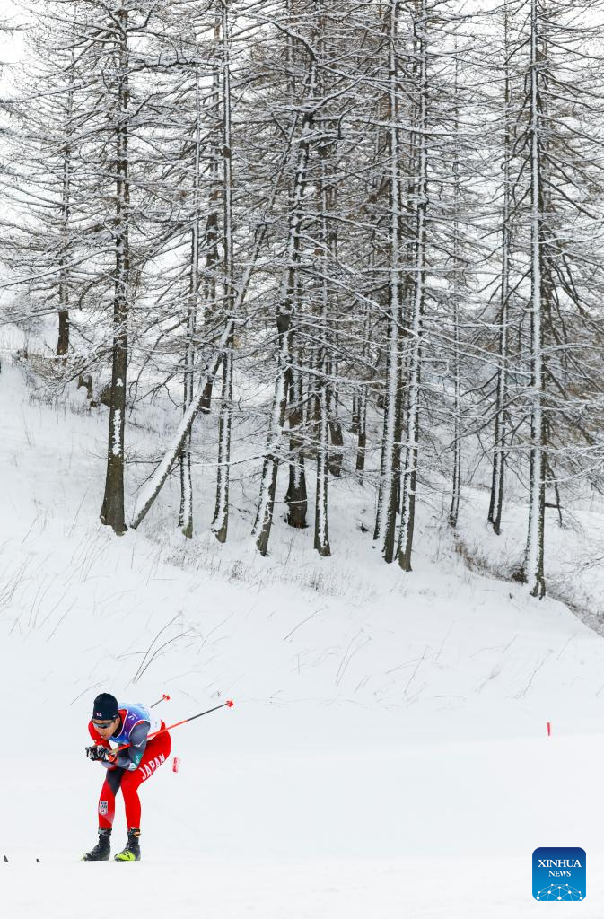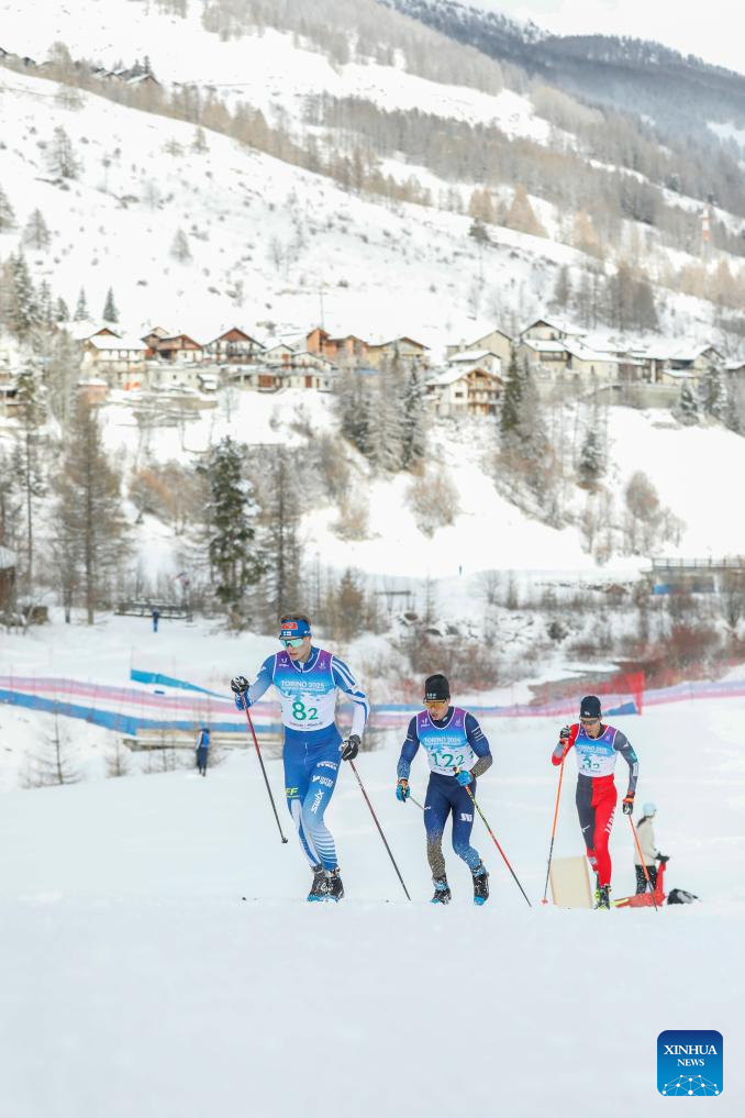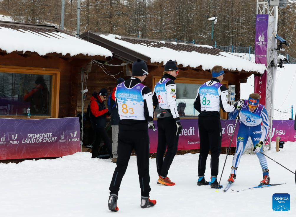 Ta Mile of China competes during the cross-country skiing men's 4x7.5km relay at the 2025 FISU Winter World University Games in Pragelato, Italy, Jan. 21, 2025. (Xinhua/Zhang Fan)