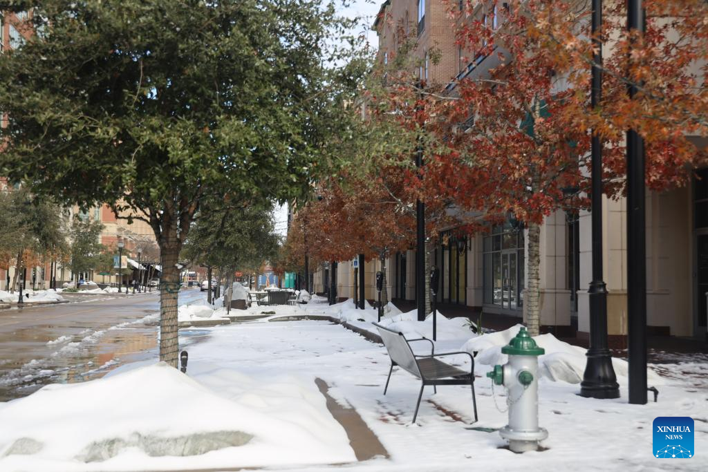 Streets are covered by snow during a winter storm in Houston, Texas, the United States, Jan. 21, 2025. From Texas to Louisiana and Florida, a wide swath of southern United States braced for a once-in-a-generation winter storm with heavy snow, sleet and ice on Tuesday, which created hazardous travel conditions for the region unaccustomed to bitterly cold weather. (Photo by Chen Chen/Xinhua)