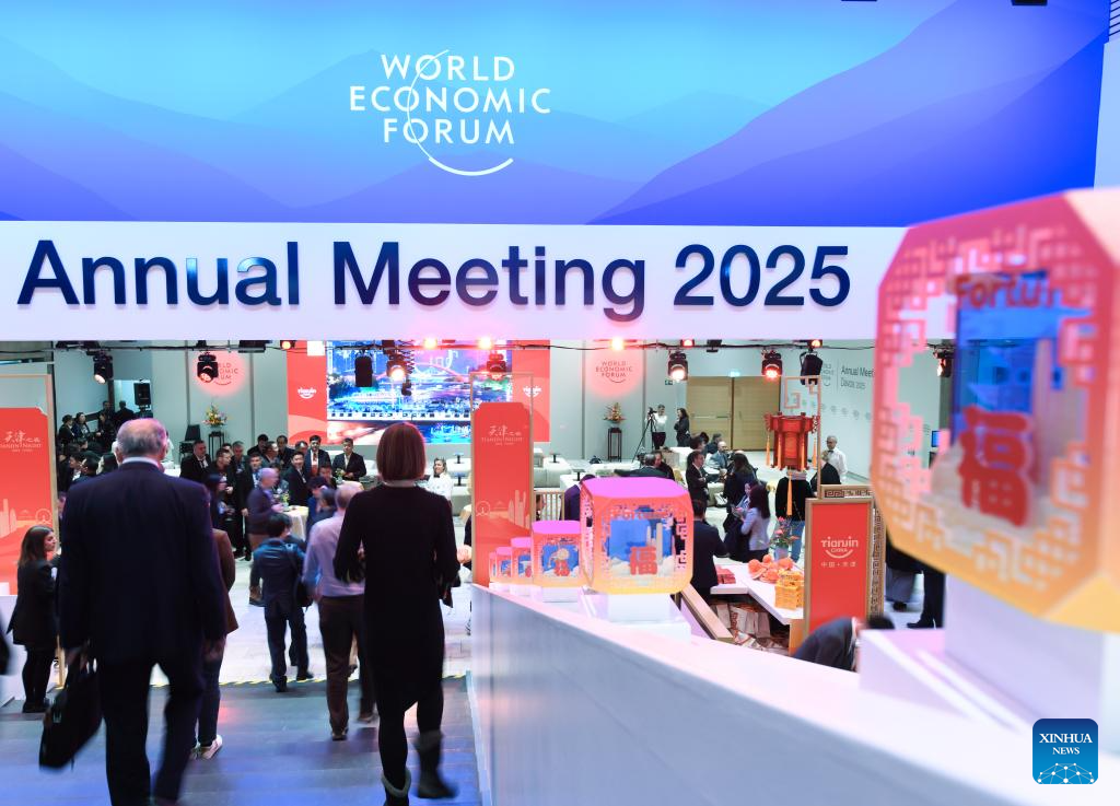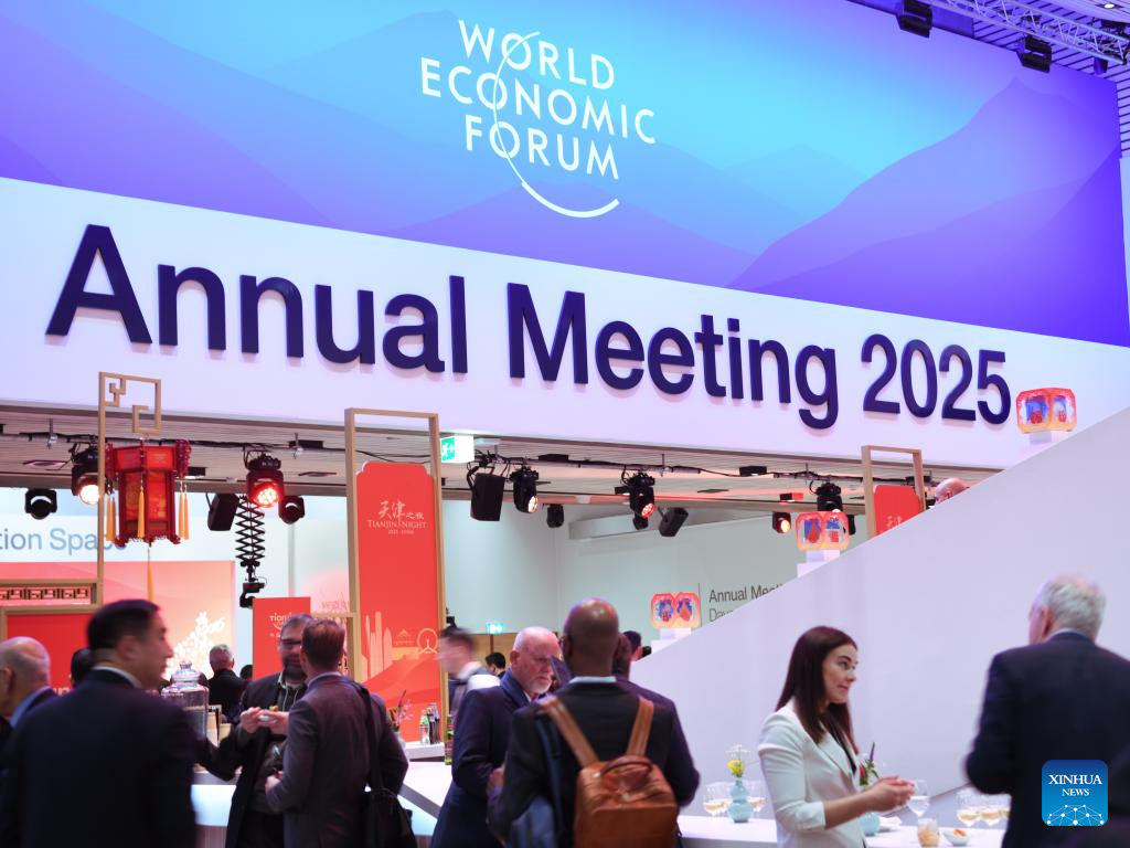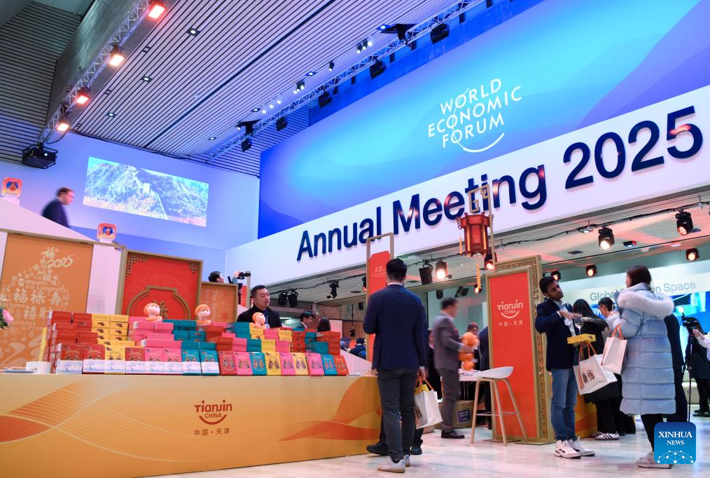 Participants attend a reception held by Tianjin City of China during the World Economic Forum (WEF) Annual Meeting 2025 in Davos, Switzerland, Jan. 21, 2025. Tianjin, the host city of the 2025 Summer Davos (Annual Meeting of the New Champions), held the reception here on Tuesday evening to mark the upcoming Chinese Spring Festival, or the Chinese Lunar New Year. (Xinhua/Lian Yi)