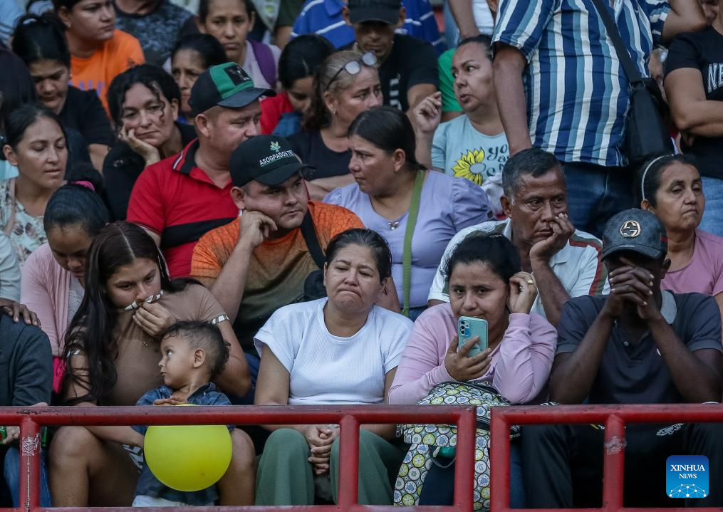 This photo provided by COLPRENSA on Jan. 22, 2025 shows displaced people at the General Santander Stadium in Cucuta, Colombia. (Catalina Olaya/COLPRENSA/Handout via Xinhua)