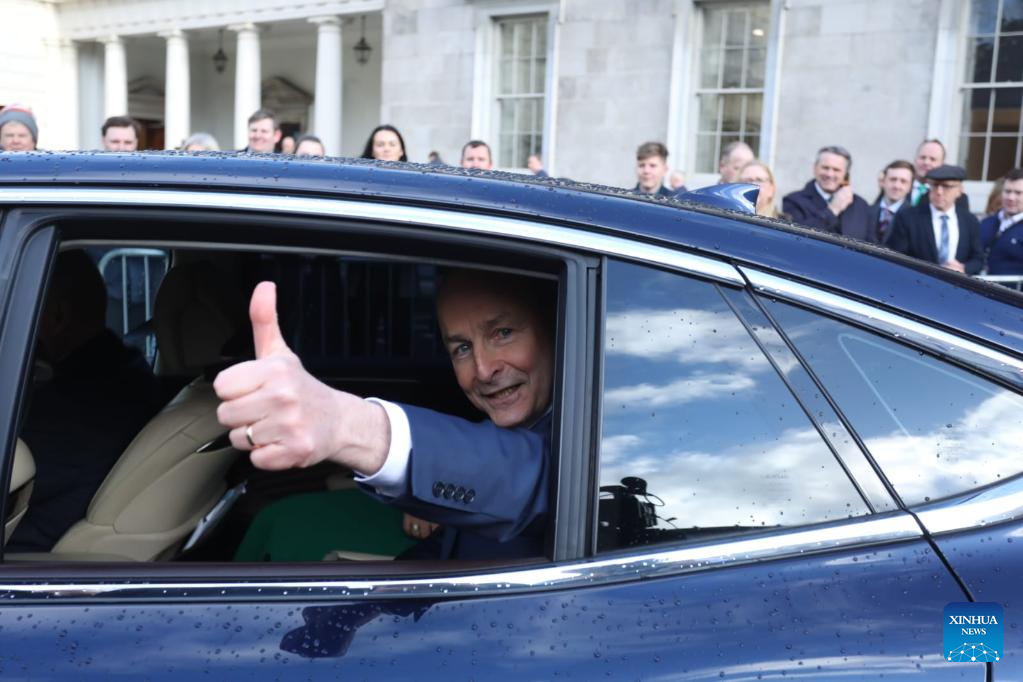 Fianna Fail leader Micheal Martin leaves Leinster House, the Irish parliament building, in Dublin, Ireland, on Jan. 23, 2025. (The Houses of the Oireachtas/Handout via Xinhua)