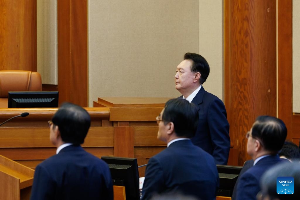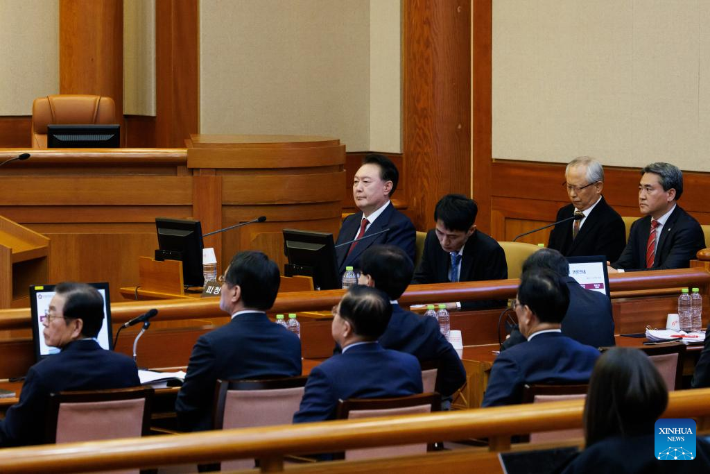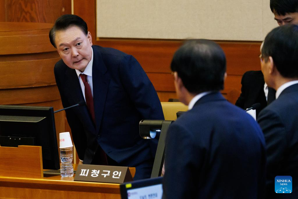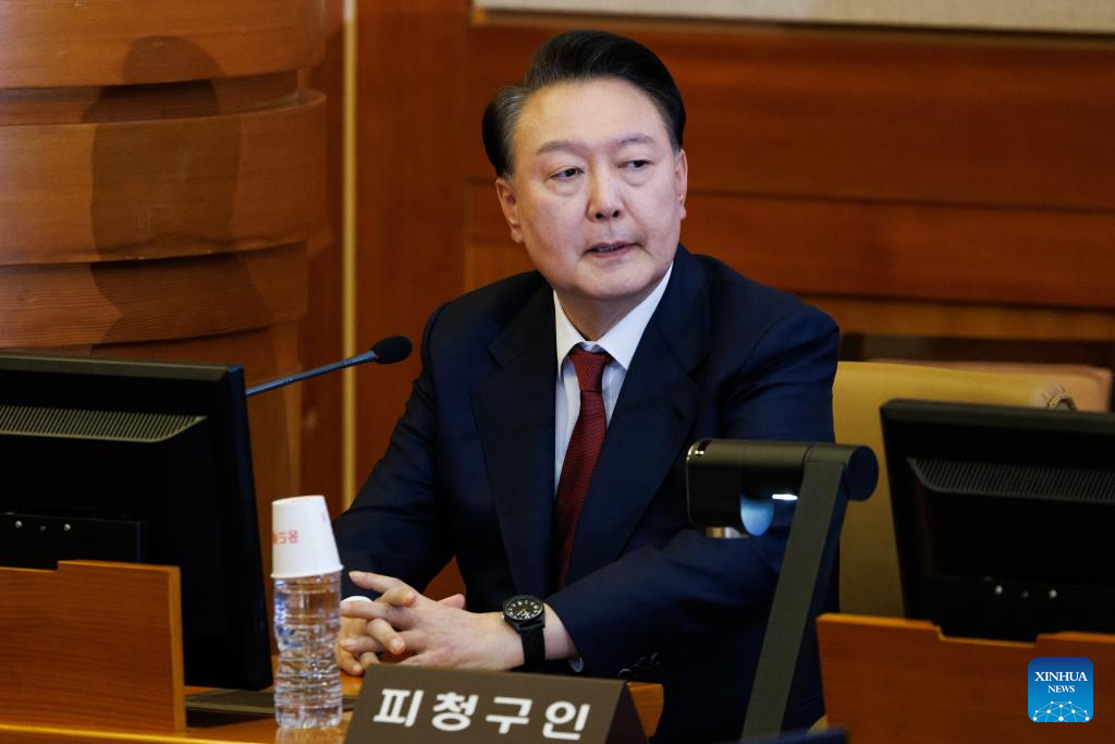 SEOUL, Jan. 23 (Xinhua) -- South Korea's constitutional court on Thursday held the fourth hearing of President Yoon Suk-yeol's impeachment trial, with the arrested president being present for the second time.