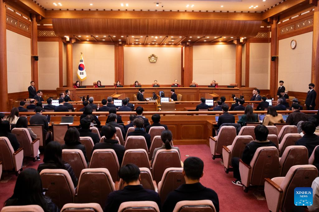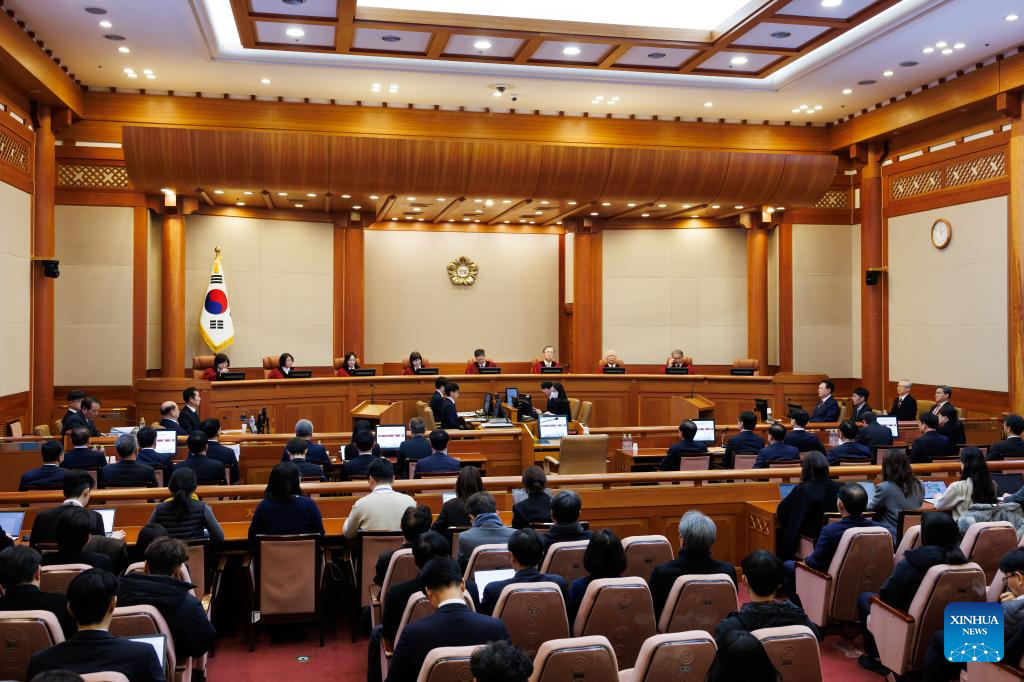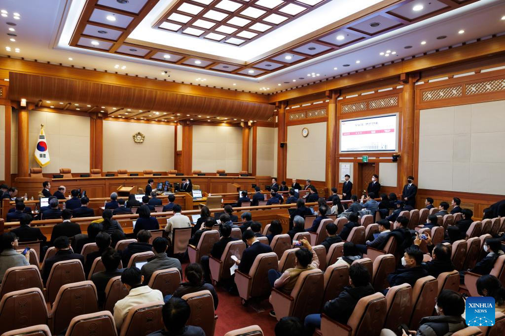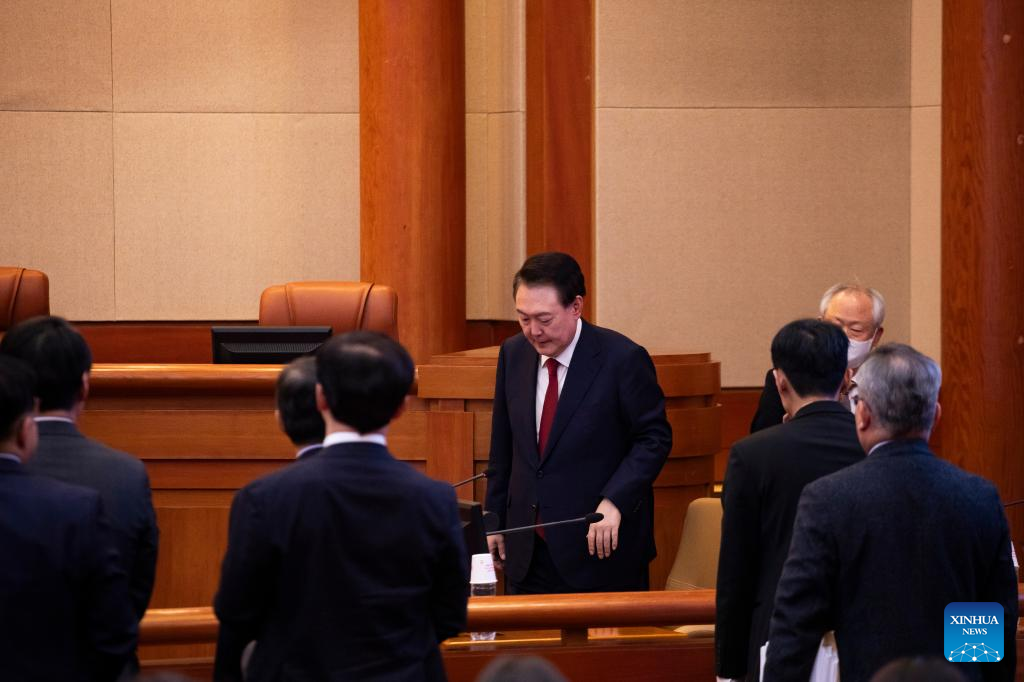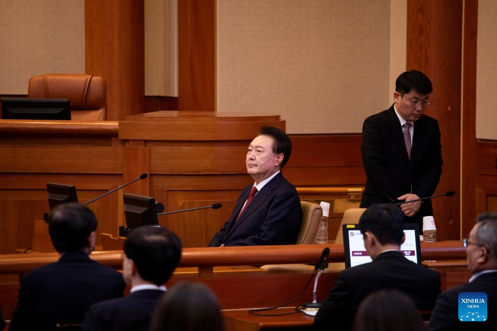 SEOUL, Jan. 23 (Xinhua) -- South Korea's constitutional court on Thursday held the fourth hearing of President Yoon Suk-yeol's impeachment trial, with the arrested president being present for the second time.