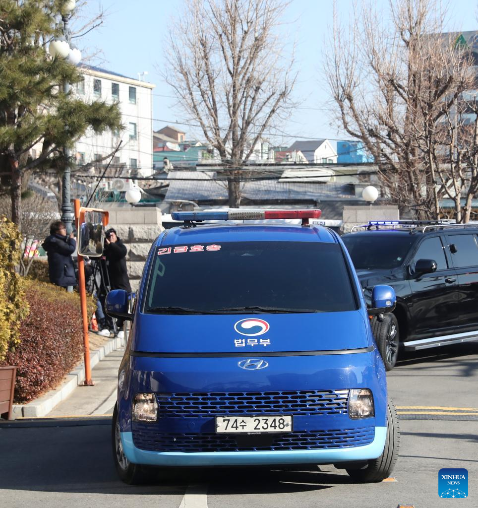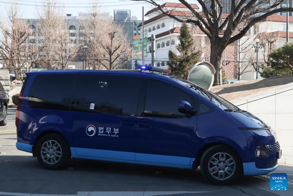A vehicle carrying South Korea's arrested President Yoon Suk-yeol arrives at the constitutional court in Seoul, South Korea, Jan. 23, 2025. (Xinhua/Yao Qilin)