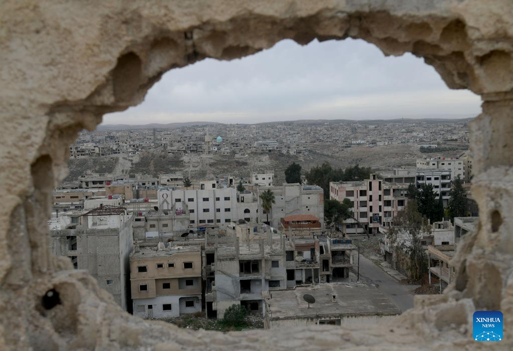 This photo taken on Jan. 22, 2025 shows a view of the war-torn Daraa city, the capital of Daraa province, Syria. (Photo by Ammar Safarjalani/Xinhua)