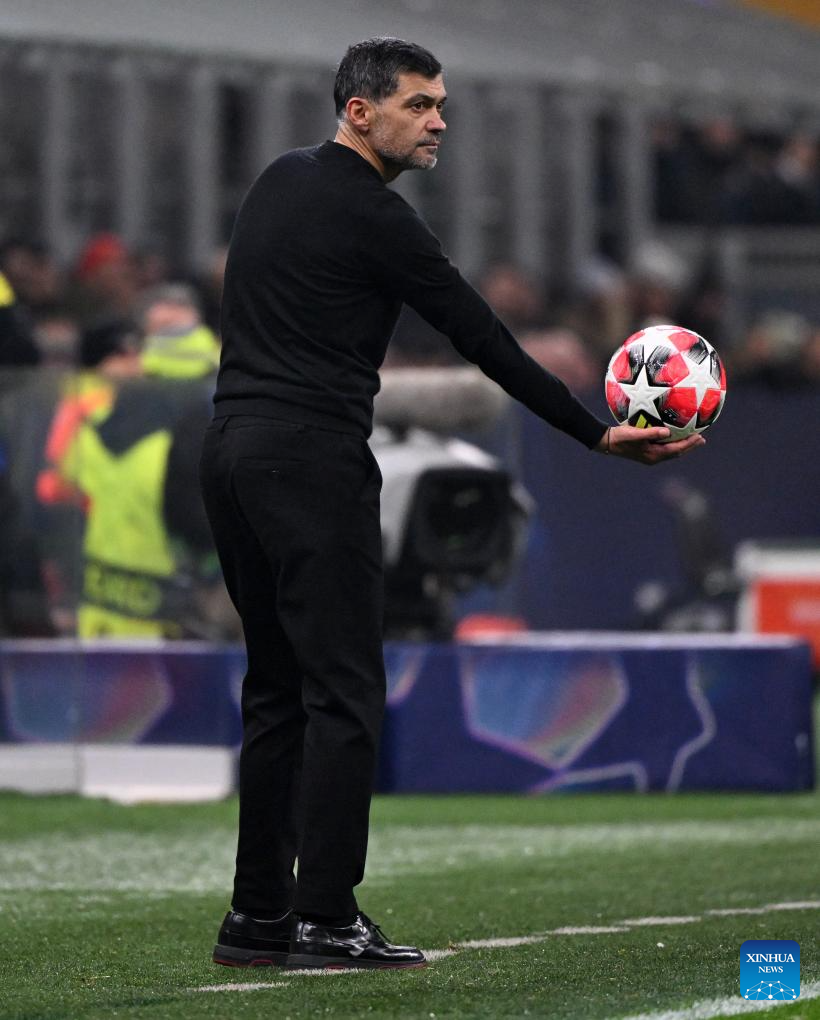 AC Milan's head coach Sergio Coincencao reacts during the UEFA Champions League match between AC Milan and Girona in Milan, Italy, Jan. 22, 2025. (Photo by Alberto Lingria/Xinhua)