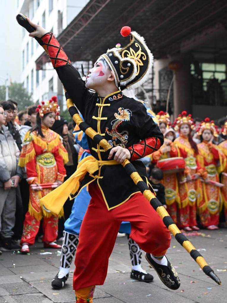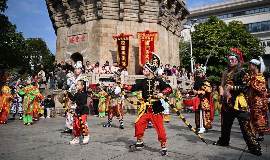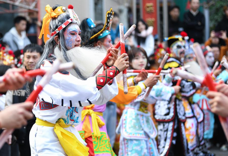 Members of a Yingge dance troupe stage a performance in Chaoyang District of Shantou City, south China's Guangdong Province, Jan. 23, 2025. (Xinhua/Deng Hua)A member of a Yingge dance troupe performs on a street in Chaoyang District of Shantou City, south China's Guangdong Province, Jan. 23, 2025. (Xinhua/Deng Hua)Members of a Yingge dance troupe stage a performance in Chaoyang District of Shantou City, south China's Guangdong Province, Jan. 23, 2025. (Xinhua/Deng Hua)A member of a Yingge dance troupe performs on a street in Chaoyang District of Shantou City, south China's Guangdong Province, Jan. 23, 2025. (Xinhua/Deng Hua)Members of a Yingge dance troupe stage a performance in front of the Wenguang tower in Chaoyang District of Shantou City, south China's Guangdong Province, Jan. 23, 2025. (Xinhua/Deng Hua)Members of a Yingge dance troupe stage a performance in Chaoyang District of Shantou City, south China's Guangdong Province, Jan. 23, 2025. (Xinhua/Deng Hua)Members of a Yingge dance troupe stage a performance in Chaoyang District of Shantou City, south China's Guangdong Province, Jan. 23, 2025. (Xinhua/Deng Hua)■