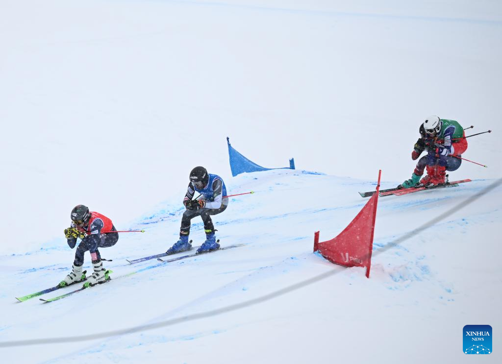 Jack James Mitchell (1st L) of the United States competes during the semifinal of the men's freestyle skiing ski cross competition at the 2025 FISU Winter World University Games in Bardonecchia, Italy, Jan. 22, 2025. (Xinhua/He Canling)