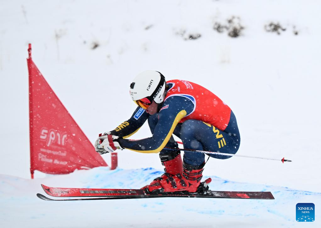 Erik Wahlberg of Sweden competes during the semifinal of the men's freestyle skiing ski cross competition at the 2025 FISU Winter World University Games in Bardonecchia, Italy, Jan. 22, 2025. (Xinhua/He Canling)