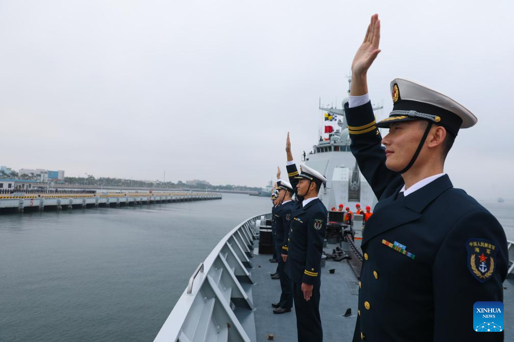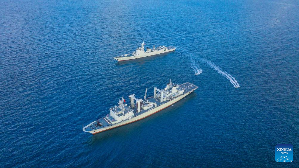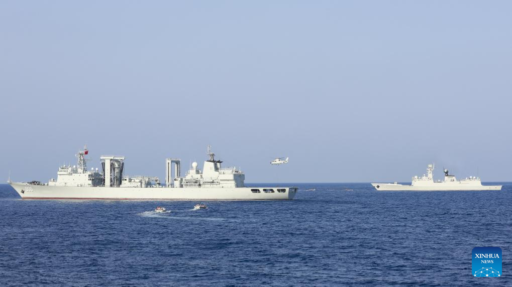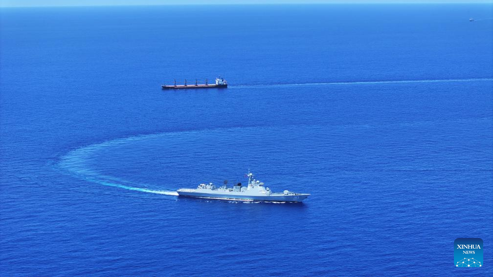 This photo taken on Jan. 2, 2025 shows the 46th fleet of the Chinese People's Liberation Army Navy during an counter-terrorism and anti-piracy exercise. A Chinese navy fleet returned to a military port in the coastal city of Zhanjiang, south China's Guangdong Province, on Friday after completing escort missions and joint exercises.