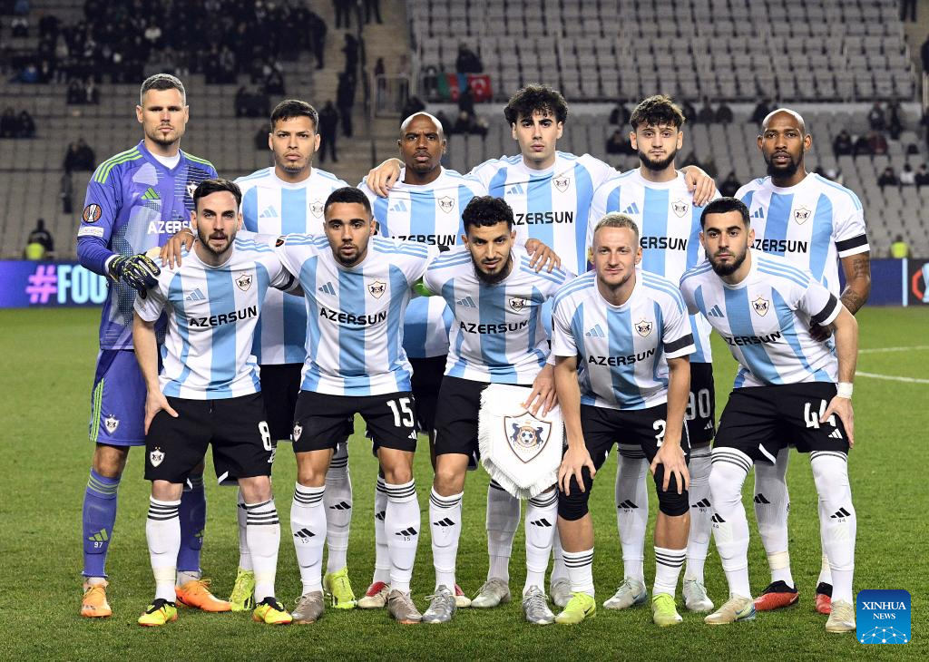 Players of Qarabag pose for photo before a UEFA Europa League match between Qarabag and FCSB in Baku, Azerbaijan, Jan. 23, 2025. (Photo by Tofik Babayev/Xinhua)