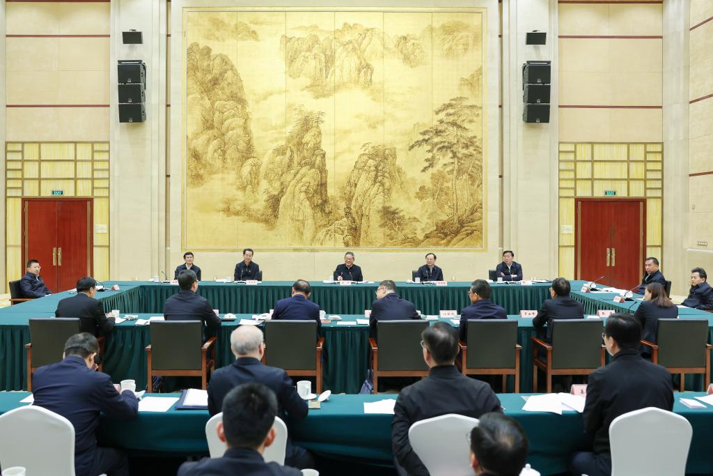 Following the visit to the old revolutionary base area of the Dabie Mountains, Chinese Premier Li Qiang, also a member of the Standing Committee of the Political Bureau of the Communist Party of China (CPC) Central Committee, chairs a symposium and hears officials' opinions and suggestions concerning the government work report and the work of the government, in Hefei, capital of east China's Anhui Province, Jan. 23, 2025.