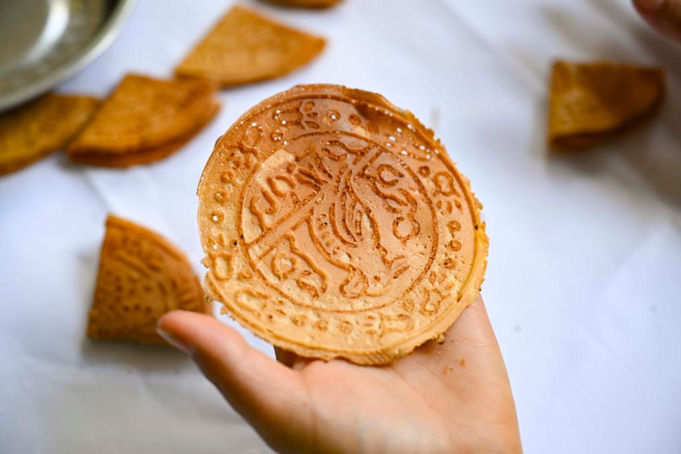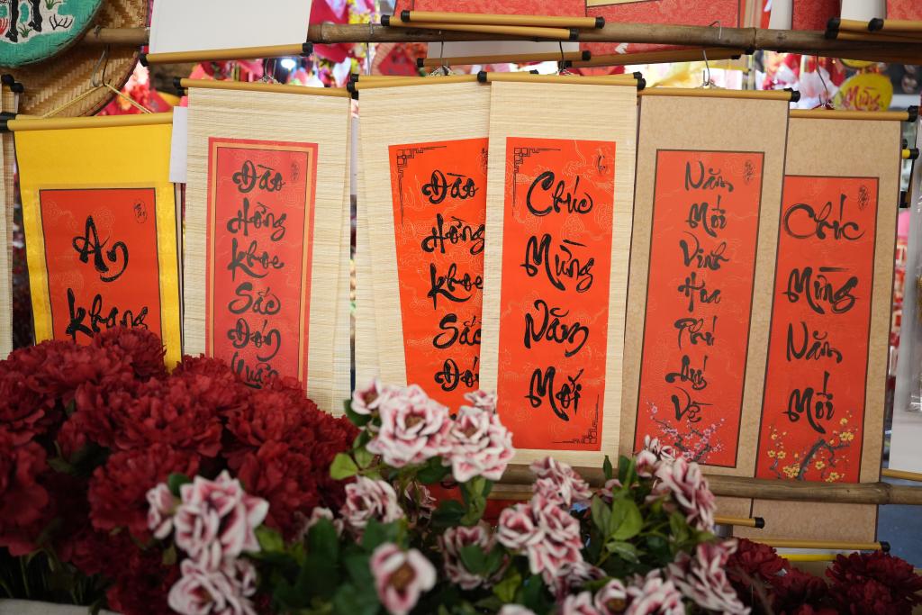 A worker displays packaged traditional "kue keranjang" or niangao cake, made for Spring Festival, at a workshop named Mini Bakery in Surakarta, Central Java, Indonesia, Jan. 17, 2025. The Chinese words "GONG XI FA CAI" , which literally means "wishing you wealth and prosperity," are written on the seals of the pastry.(Photo by Bram Selo/Xinhua) A worker makes tradional snacks for the upcoming Spring Festival in Kuala Lumpur, Malaysia, Jan. 13, 2025. (Xinhua/Cheng Yiheng) This photo shows Spring Festival couplets written in Vietnamese in Hang Ma street, Hanoi, capital of Vietnam, on Jan. 22, 2025. (Xinhua/Hu Jiali) South Korean traditional musicans perform during a celebration of the Spring Festival holiday in Seoul, South Korea, on Feb. 11, 2024. (Photo by Jun Hyosang/Xinhua)