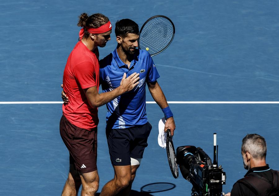 MELBOURNE, Jan. 24 (Xinhua) -- Alexander Zverev is through to his first Australian Open final after Novak Djokovic suddenly withdrew from their semifinal match.