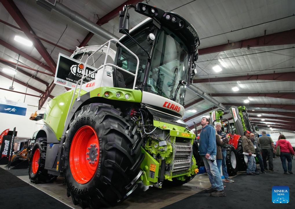 A giant tractor is displayed at the 2025 Pacific Agriculture Show in Abbotsford, British Columbia, Canada, on Jan. 23, 2025. Showcasing the latest and most innovative equipment and technology for the agriculture industry, the three-day show kicked off here on Thursday. (Photo by Liang Sen/Xinhua)