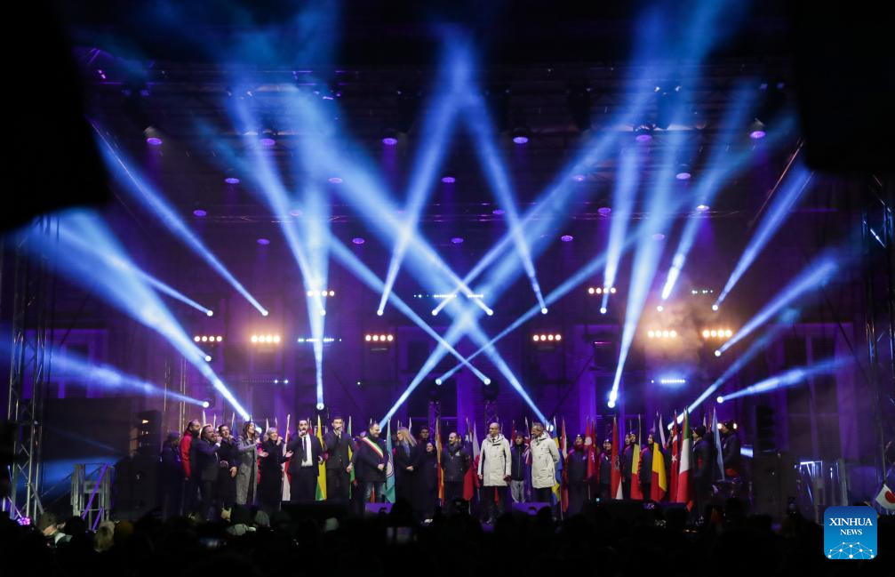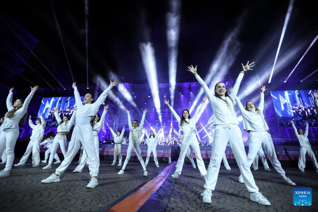Artists perform during the closing ceremony of the 2025 FISU Winter World University Games in Turin, Italy, Jan. 23, 2025. (Xinhua/Li Jing)