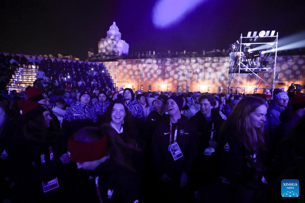 Athletes attend the closing ceremony of the 2025 FISU Winter World University Games in Turin, Italy, Jan. 23, 2025. (Xinhua/Li Jing)
