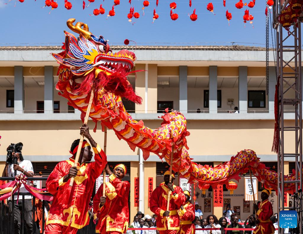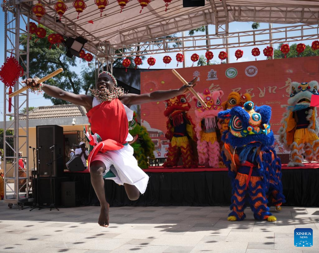 A performance is staged in celebration of the upcoming Chinese New Year, or the Spring Festival, in Nairobi, Kenya on Jan. 24, 2025. (Xinhua/Li Yahui)