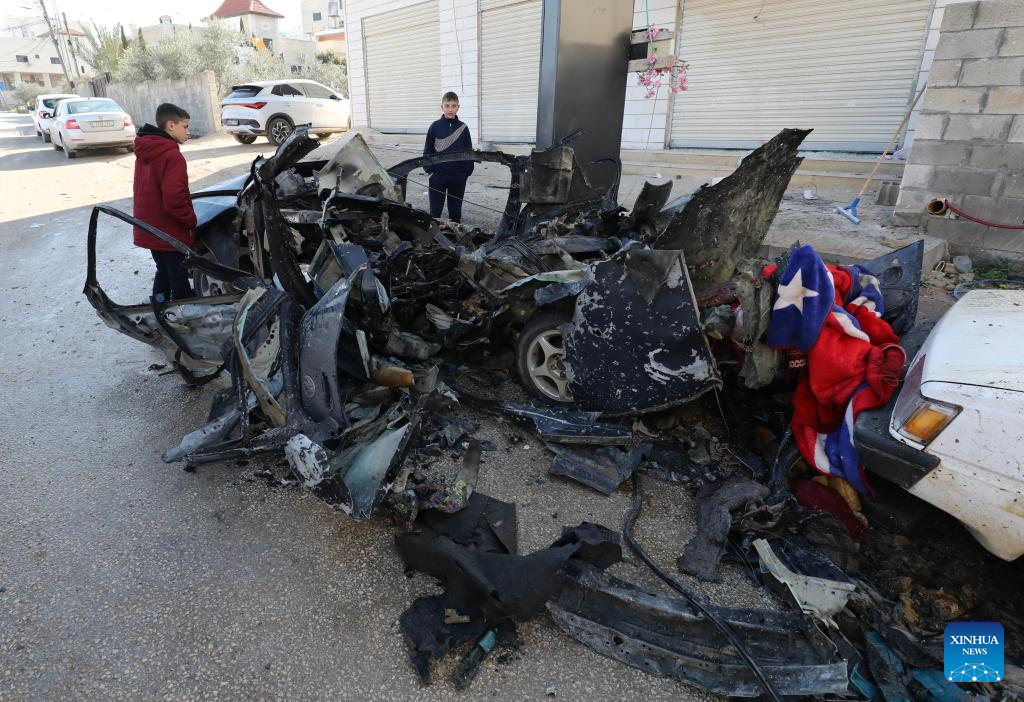 RAMALLAH/JERUSALEM, Jan. 24 (Xinhua) -- Two Palestinians were killed on Friday in an Israeli airstrike targeting a vehicle in Qabatiya, south of Jenin in the northern West Bank.