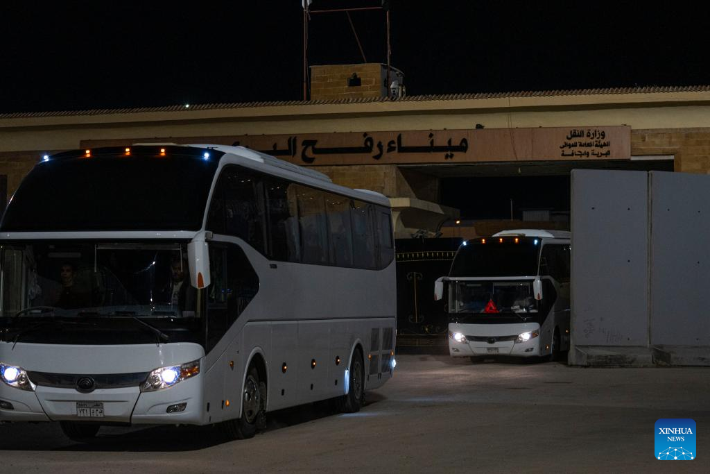 The International Committee of the Red Cross (ICRC) announced Saturday the completion of the second phase of a prisoner-hostage exchange between Hamas and Israel, implemented under the initial terms of a ceasefire agreement. (Str/Xinhua)