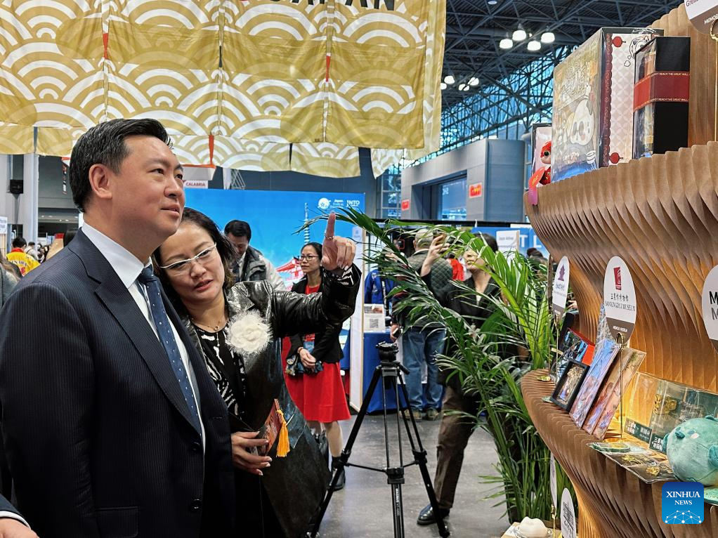 The two-day event attracted over 550 travel providers from around the world. The China booth, organized by the China National Tourist Office in New York and New York City's Memor Museum, featured interactive experiences such as virtual reality views of artifacts from the ancient archaeological site of Sanxingdui in China's Sichuan Province.(Photo by Qin Mingwei/Xinhua)