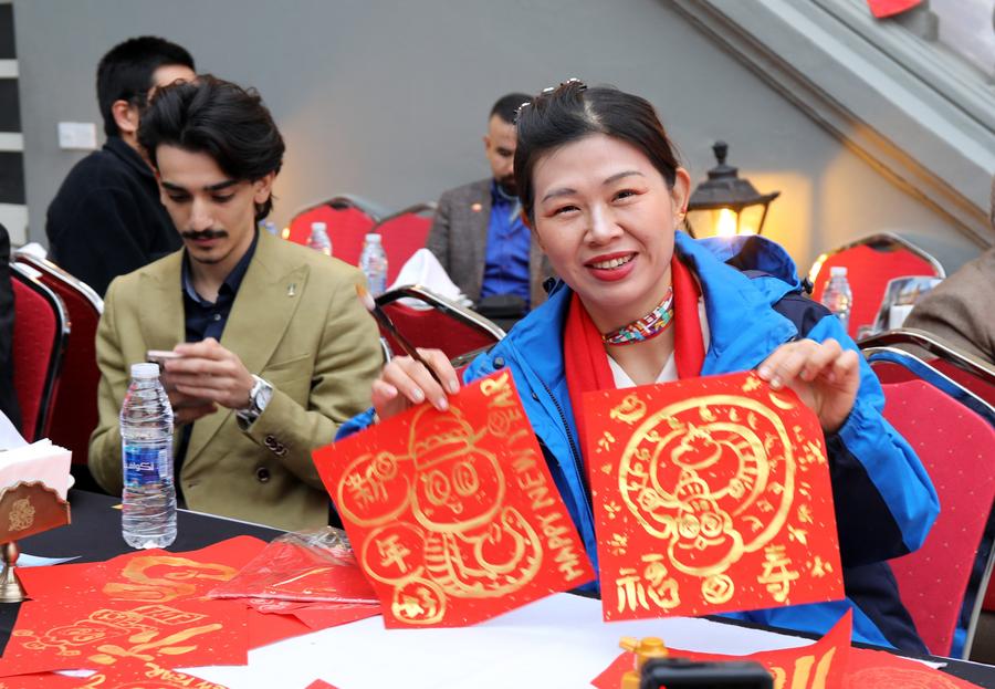 BAGHDAD, Jan. 26 (Xinhua) -- Decorated with traditional Chinese couplets, red lanterns, and vibrant symbols of the Year of the Snake, the Qasr Aliya restaurant -- once Queen Aliya's palace -- radiated festive energy. Overlooking the Tigris River as it winds through Baghdad, the venue became a meeting ground for diplomacy, culture, and celebration during the Iraq-China Friendship Association's event on Friday, welcoming the Chinese Spring Festival.