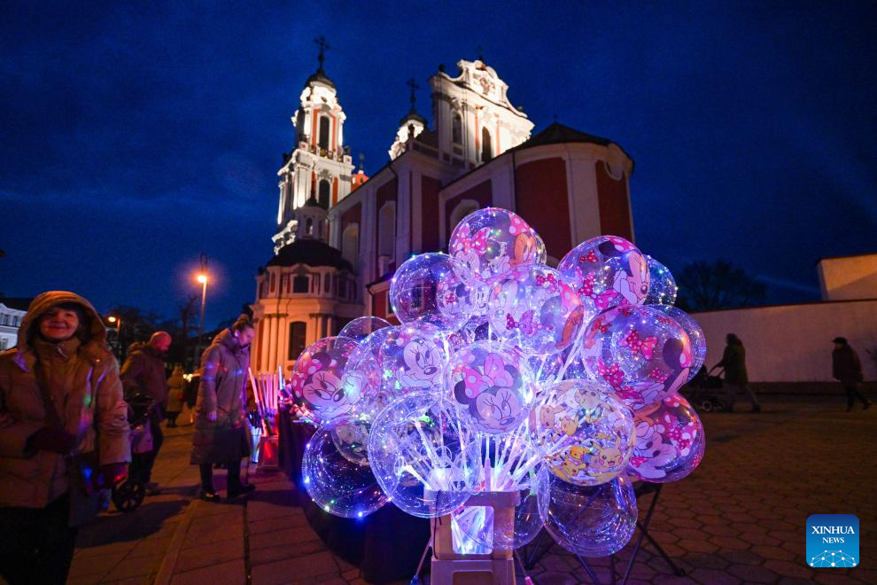 The seventh International Light Festival was held here from Jan. 24 to 26, exhibiting light installations designed by artists from Lithuania, France, Germany, Spain, Hungary, Italy, Denmark and other countries. (Photo by Alfredas Pliadis/Xinhua)