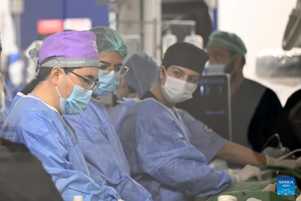Chinese doctor Pan Xiangbin (1st L) operates a heart procedure at a hospital in Rawalpindi, Pakistan on Jan. 23, 2025. (Xinhua/Ahmad Kamal)