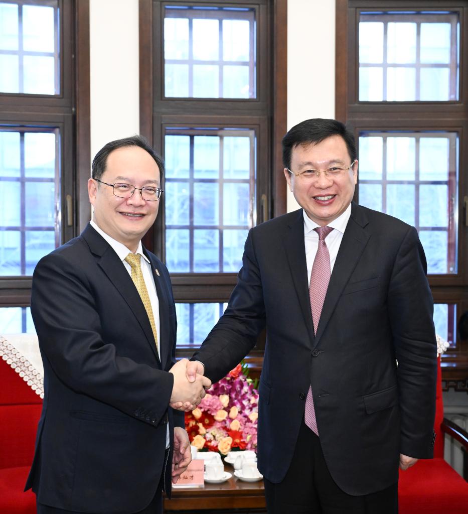 President of Xinhua News Agency Fu Hua meets with Thai Ambassador to China Chatchai Viriyavejakul in Beijing, capital of China, Jan. 27, 2025. The two sides exchanged views on enhancing communication and cooperation between China and Thailand in the field of news reporting. They noted that since the establishment of diplomatic ties 50 years ago, China-Thailand relations have maintained healthy and stable development, and both countries should take media cooperation as a link to further promote friendly exchanges and mutual trust between the two peoples. (Xinhua/Li Xiang)