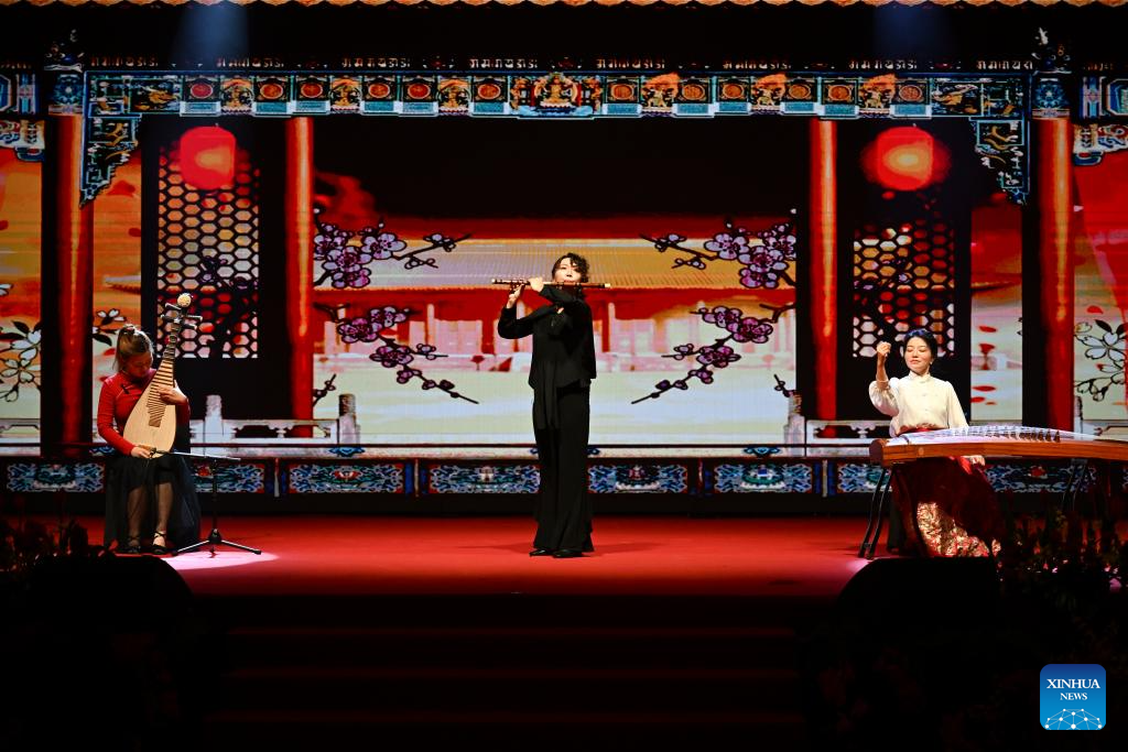 Artists play music during a Spring Festival reception held by the Chinese embassy in Kuala Lumpur, Malaysia, Jan. 24, 2025. (Xinhua/Cheng Yiheng)