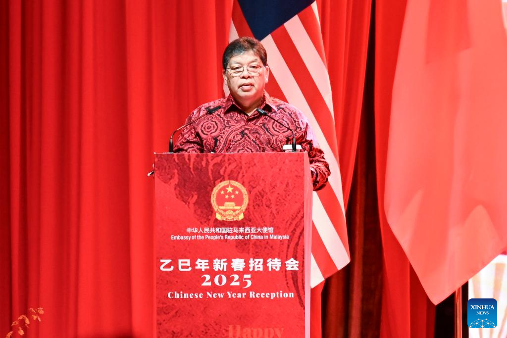 Johari bin Abdul, speaker of Malaysia's Dewan Rakyat, lower house of the parliament, addresses a Spring Festival reception held by the Chinese embassy in Kuala Lumpur, Malaysia, Jan. 24, 2025. (Xinhua/Cheng Yiheng)