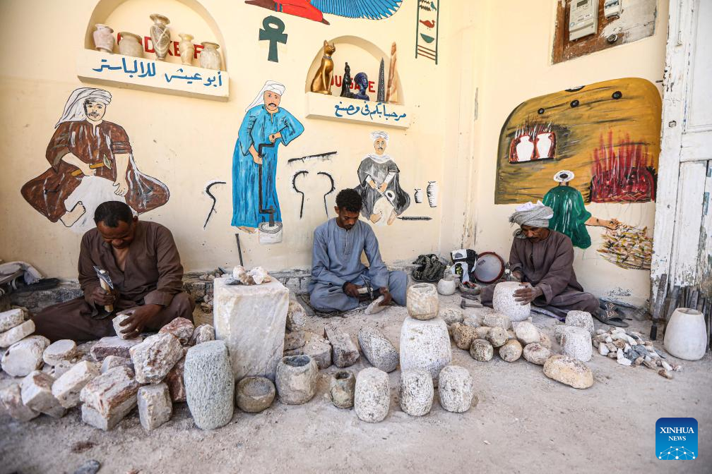 "We use the same techniques, tools, and materials employed in ancient Egypt to craft these artifacts," he told Xinhua, shaping a vase.