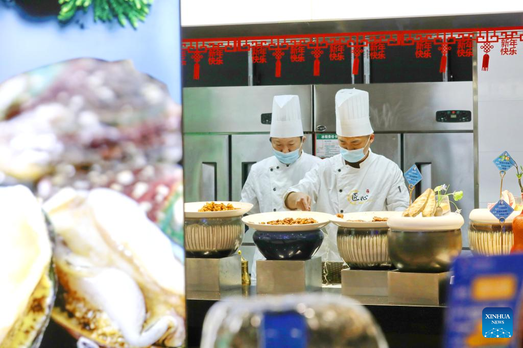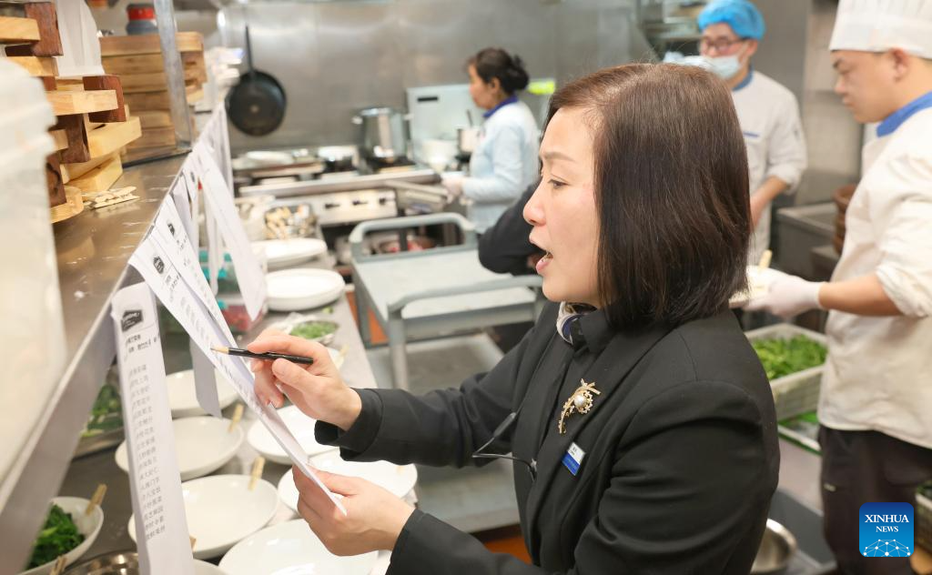 A worker arranges cooking of reunion meals at a restaurant in Nantong City, east China's Jiangsu Province, Jan. 28, 2025. Dining with family members in a reunion meal has been a cherished tradition for the Chinese on the eve of the Spring Festival, which falls on Jan. 29 this year. (Photo by Xu Congjun/Xinhua)