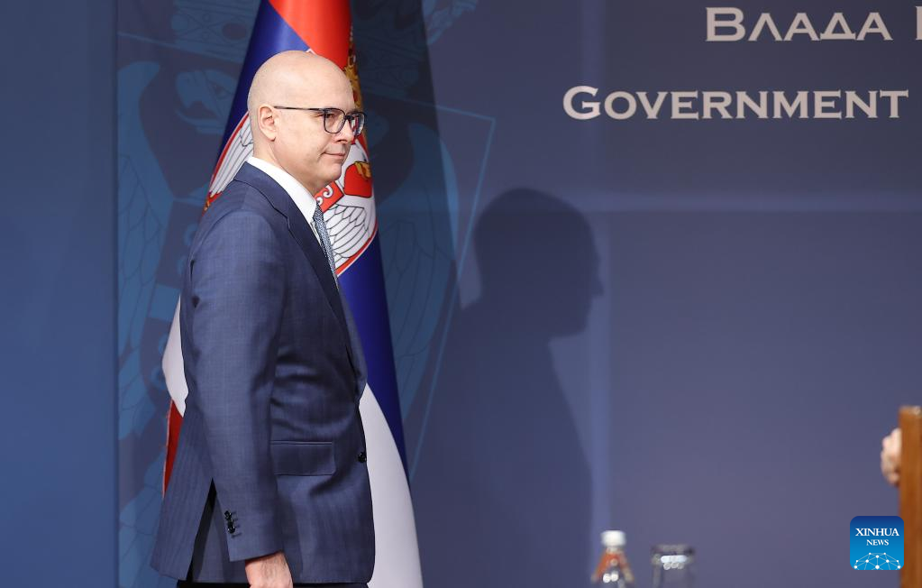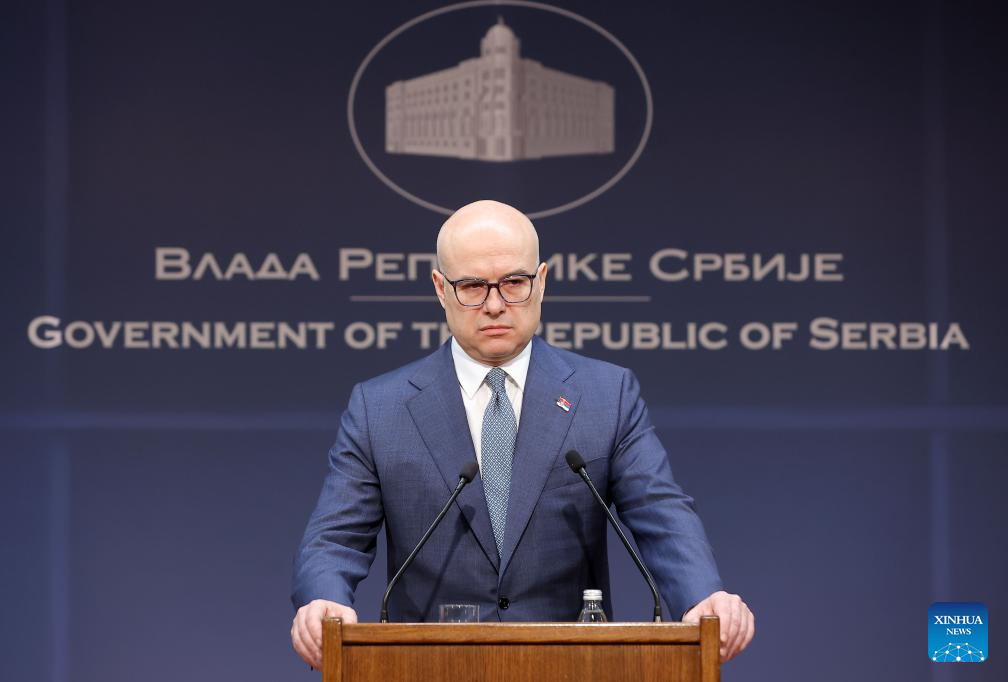 BELGRADE, Jan. 28 (Xinhua) -- Serbian Prime Minister Milos Vucevic announced resignation on Tuesday during an extraordinary press conference at the government building in Belgrade, citing "elevated tensions" caused by a collapse at Novi Sad railway station in November last year, which claimed 15 lives.