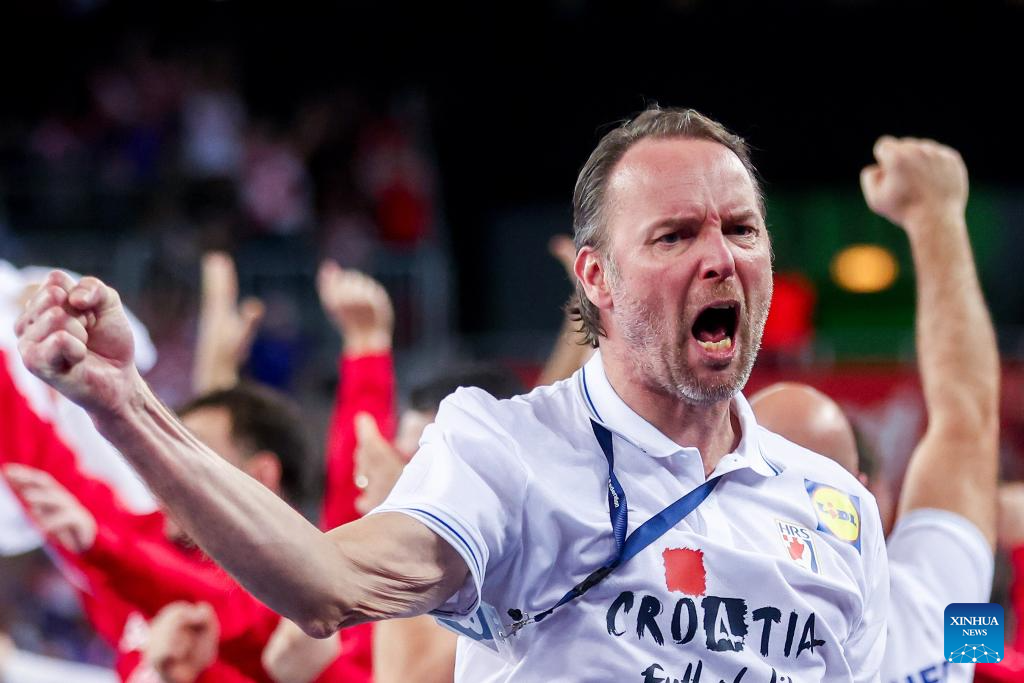 Head coach of Croatia Dagur Sigurdsson reacts during the 2025 IHF Men's Handball World Championship quarterfinal between Croatia and Hungary in Zagreb, Croatia, Jan. 28, 2025. (Sanjin Strukic/PIXSELL via Xinhua)