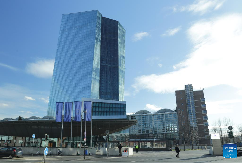 This photo taken on Jan. 30, 2025 shows the European Central Bank (ECB) headquarters in Frankfurt, Germany. The ECB on Thursday decided to lower key interest rates by 25 basis points. (Xinhua/Zhang Fan)