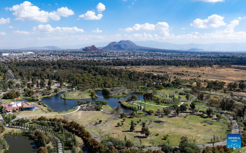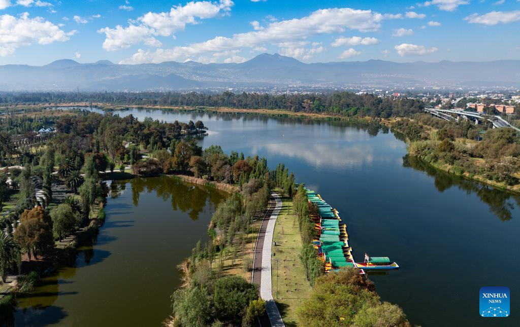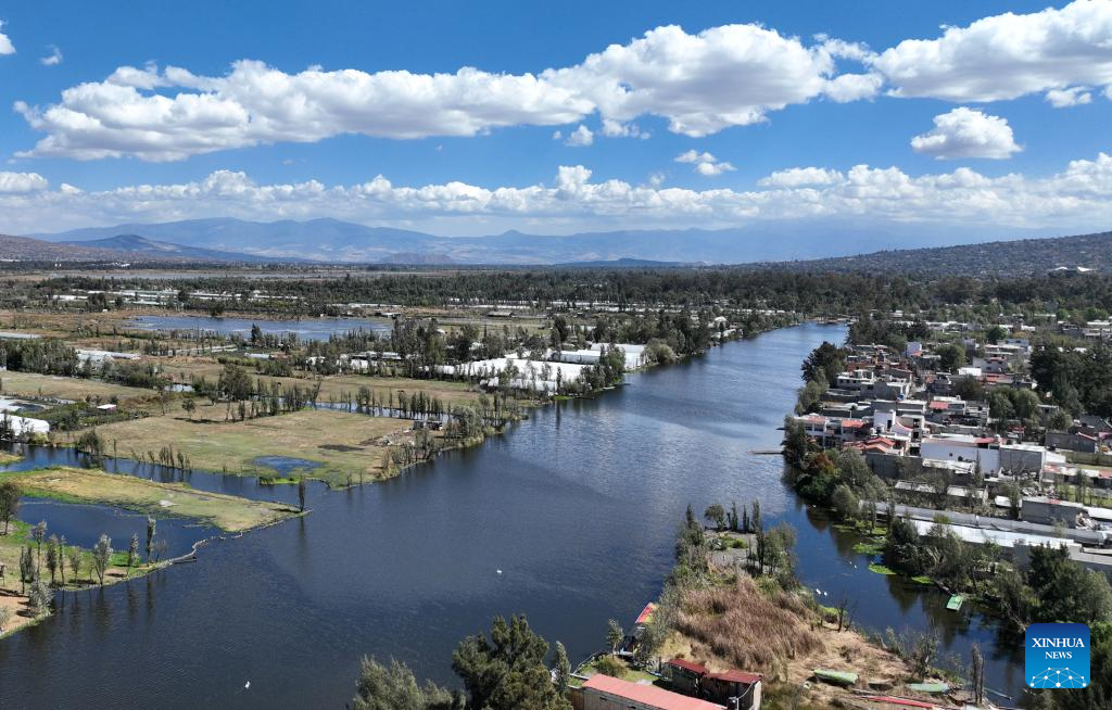 An aerial drone photo taken on Jan. 30, 2025 shows the Xochimilco Ecological Park in Mexico City, capital of Mexico. "Xochimilco" means "the land of flowers." It was included in the World Heritage List by the United Nations Educational, Scientific and Cultural Organization (UNESCO) in 1987. The network of canals and artificial islands here show the lifestyle of the Aztecs. Besides picturesque landscape, it is also home to various animals such as white herons, pelicans, and axolotls. (Xinhua/Li Mengxin)