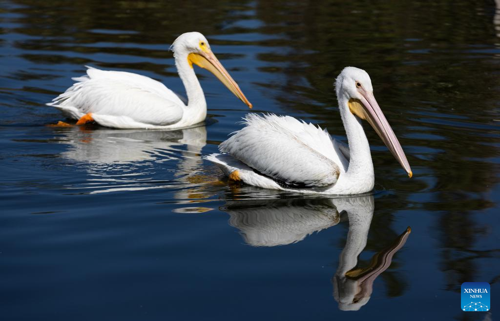 This photo taken on Jan. 30, 2025 shows pelicans resting in waters in Xochimilco, Mexico City, capital of Mexico. "Xochimilco" means "the land of flowers." It was included in the World Heritage List by the United Nations Educational, Scientific and Cultural Organization (UNESCO) in 1987. The network of canals and artificial islands here show the lifestyle of the Aztecs. Besides picturesque landscape, it is also home to various animals such as white herons, pelicans, and axolotls. (Xinhua/Li Mengxin)