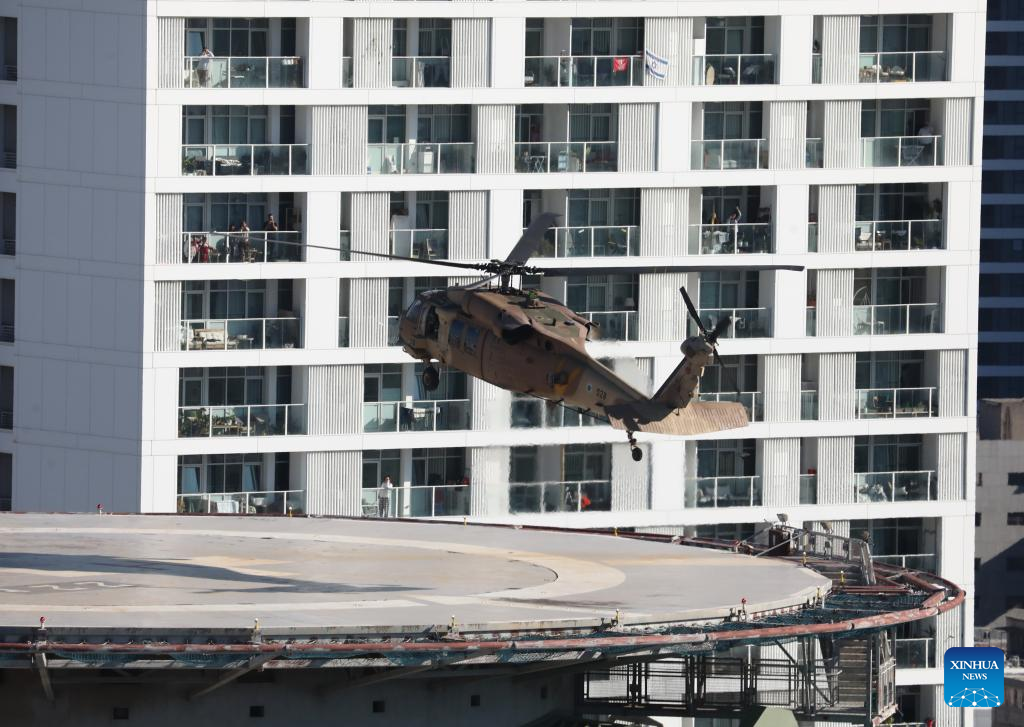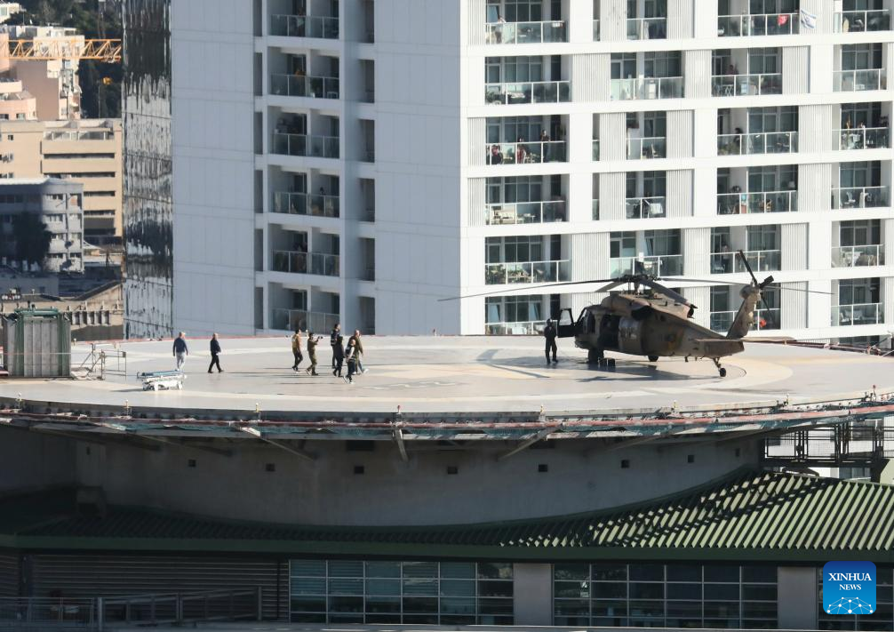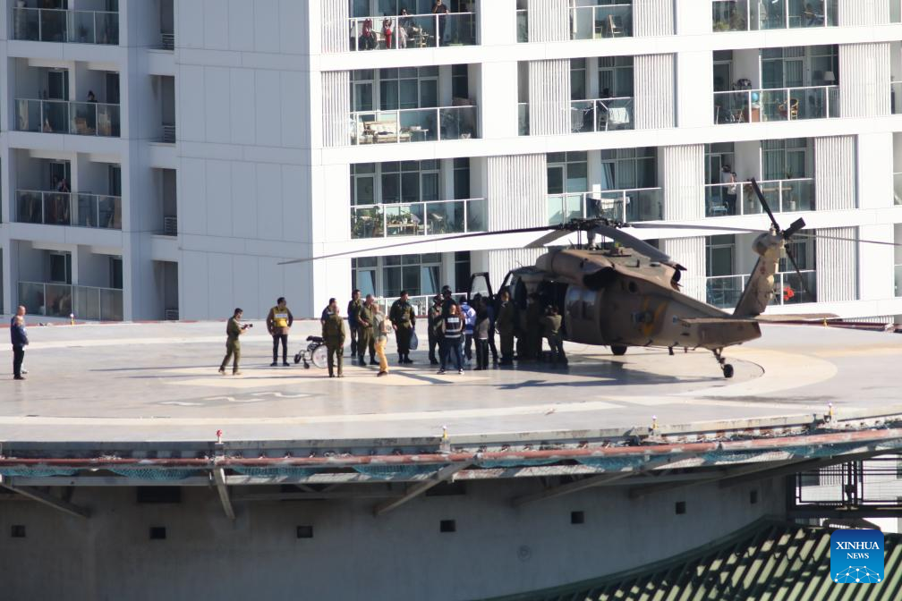 A military helicopter with released Israeli hostage Keith Siegel arrives at a medical center in Tel Aviv, Israel, on Feb. 1, 2025. (Gideon Markowicz/JINI via Xinhua)