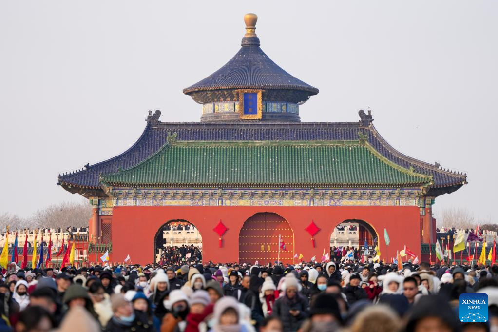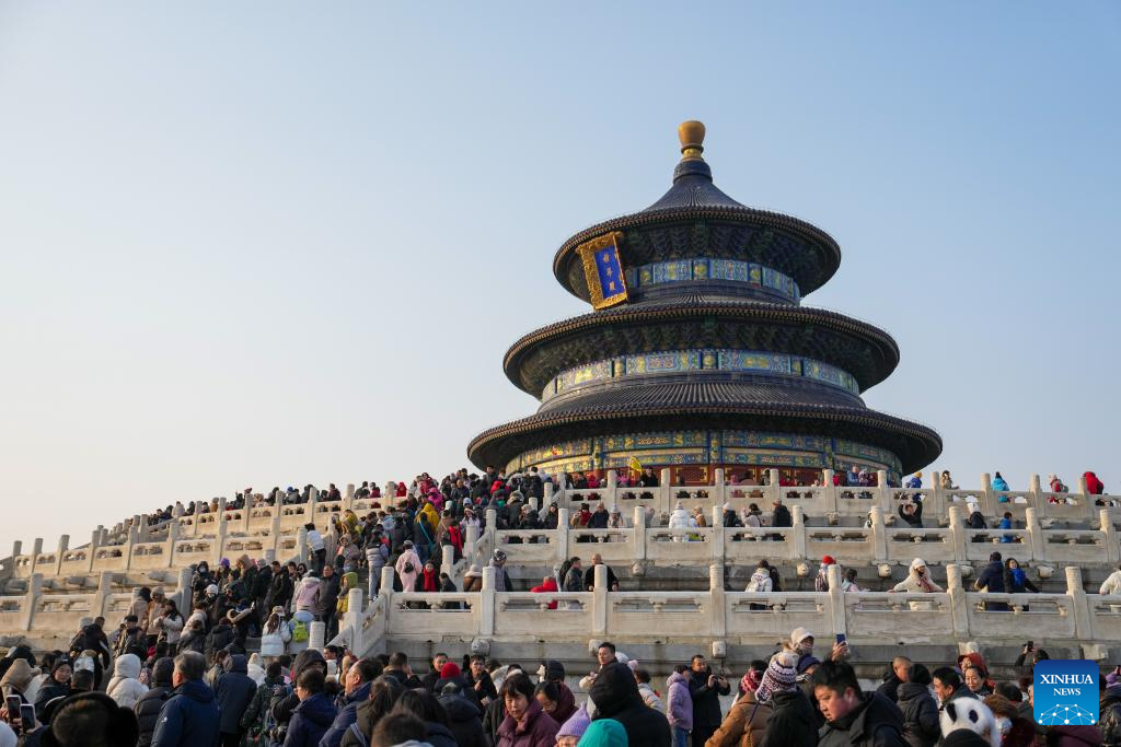 Tourists visit the Tiantan (Temple of Heaven) Park in Beijing, capital of China, Jan. 30, 2025. Beijing is now celebrating the first Spring Festival after the United Nations Educational, Scientific and Cultural Organization (UNESCO) inscribed the Beijing Central Axis in its World Heritage List and the Spring Festival in its Representative List of the Intangible Cultural Heritage of Humanity last year.