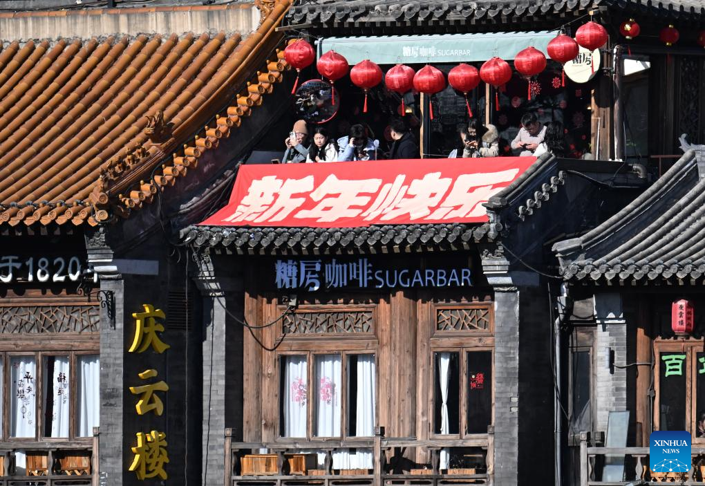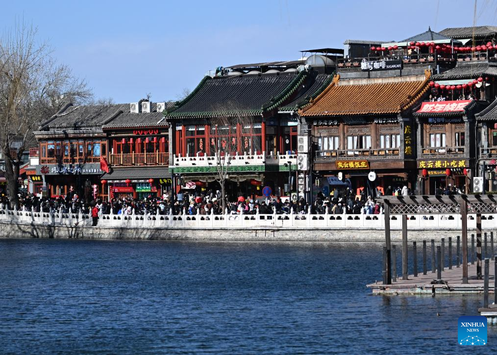 Tourists visit the Shichahai area along the Central Axis in Beijing, capital of China, Feb. 2, 2025. Beijing is now celebrating the first Spring Festival after the United Nations Educational, Scientific and Cultural Organization (UNESCO) inscribed the Beijing Central Axis in its World Heritage List and the Spring Festival in its Representative List of the Intangible Cultural Heritage of Humanity last year.