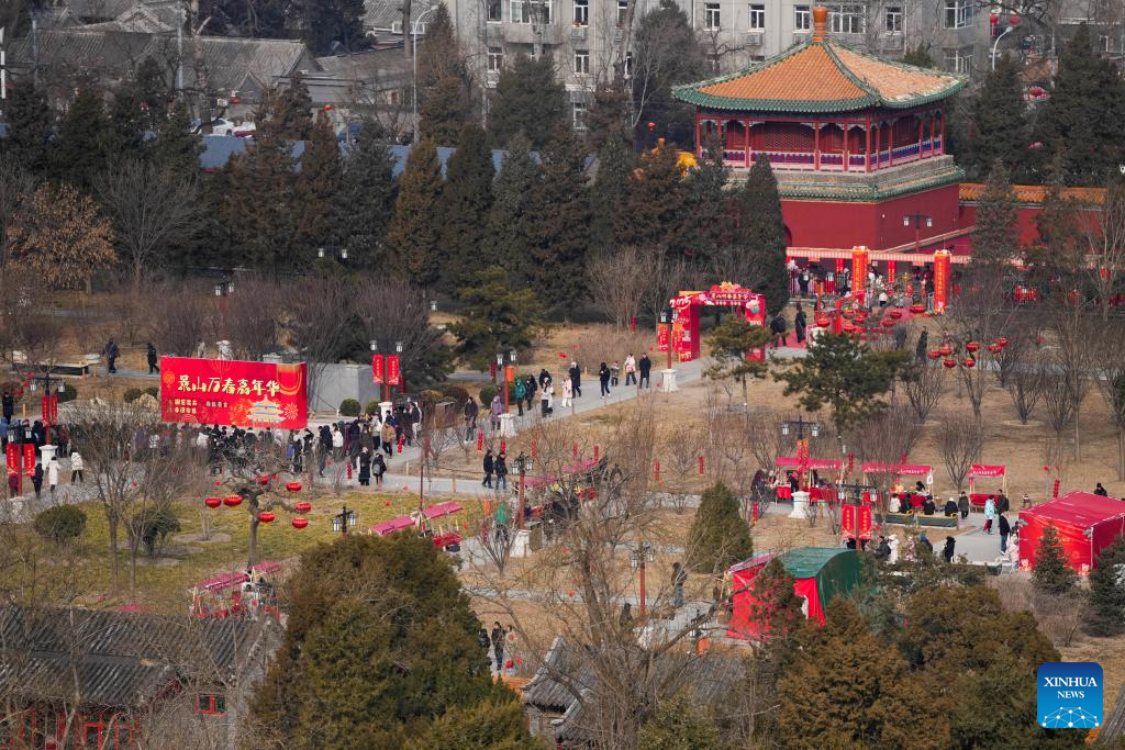 Tourists visit the Jingshan Park in Beijing, capital of China, Jan. 31, 2025. Beijing is now celebrating the first Spring Festival after the United Nations Educational, Scientific and Cultural Organization (UNESCO) inscribed the Beijing Central Axis in its World Heritage List and the Spring Festival in its Representative List of the Intangible Cultural Heritage of Humanity last year.